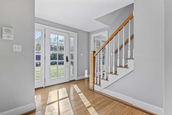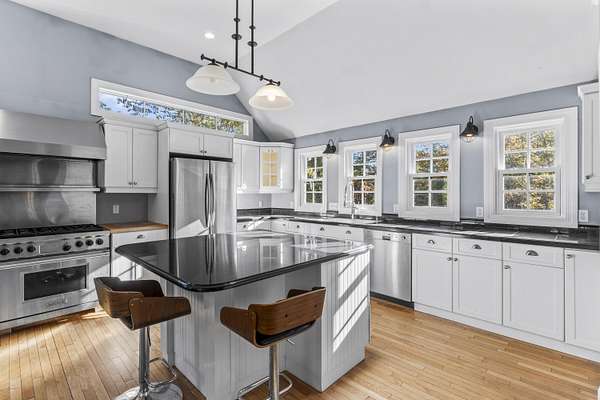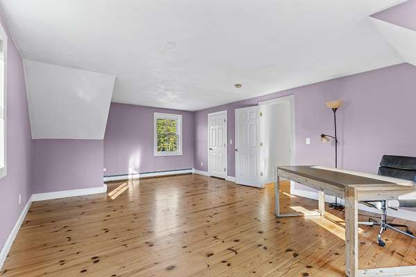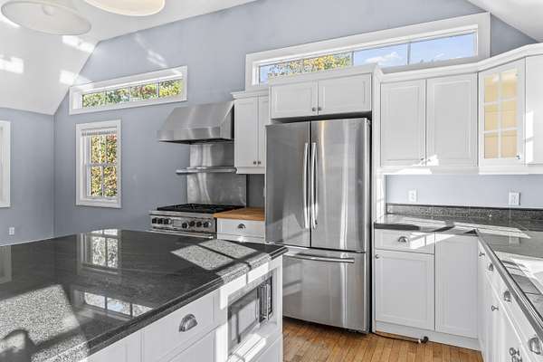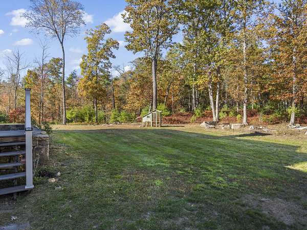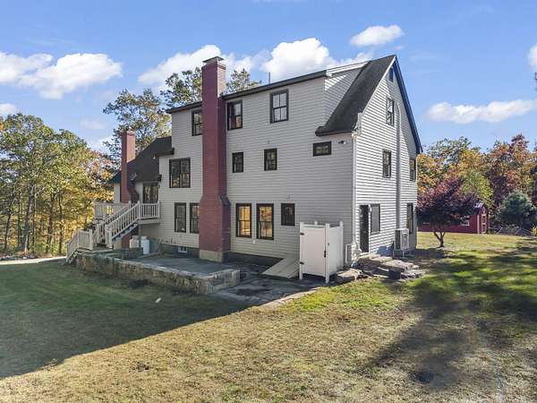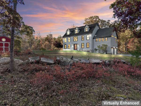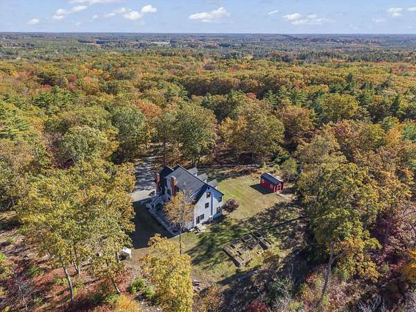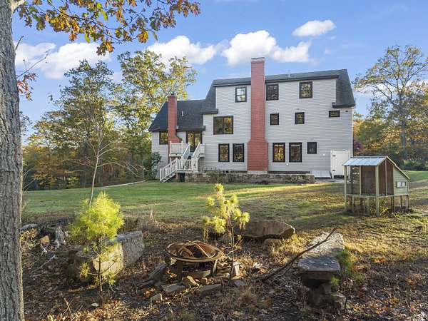 Nestled on almost 14 secluded acres, this spacious colonial offers the perfect blend of comfort, charm, and versatility. The beautiful black-and-white kitchen features a granite island with seating, a six-burner Wolf range, and a cozy wood stove in the eat-in area--ideal for casual gatherings. Oak floors run throughout the home, adding warmth and character. The inviting living room boasts a wood-burning fireplace and flows seamlessly into the adjoining dining room, creating an ideal space for entertaining. A flexible first-floor bonus room can serve as a family room, office, or playroom. You'll also find a convenient laundry room with a shower (currently used as a dog wash) and a half bath completing the main level. Upstairs, the expansive primary suite includes a walk-in closet and en-suite bath. Two additional large bedrooms and a full bath allow space for additional family members. The finished third level provides two more spacious rooms--perfect for guest rooms, a playroom, hobby space, or whatever fits your lifestyle. The full basement provides both interior and exterior (bulkhead) access, along with built-in shelving for excellent storage. Outside, enjoy raised garden beds and newly planted fruit tree saplings--ready to grow with you. There is plenty of room to raise animals, expand the gardens or ride your 4 wheeler and an outdoor shower to clean up from your outdoor adventuring. This private property offers ample space to relax, play, and create the life you've imagined. Additional land is available.
