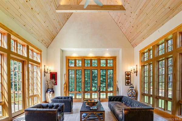 Sunlight spills into the bright sunroom, the perfect spot for morning coffee, a good book, or a recharge on gray winter days.