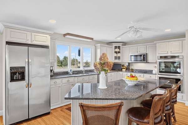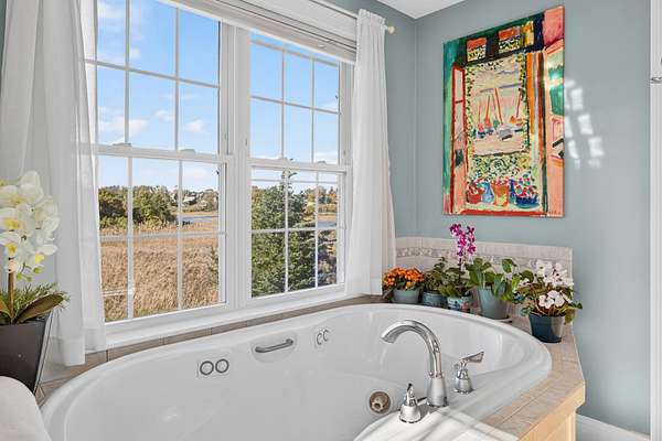 Set on 2.95 acres with panoramic, unspoiled views of the renowned Sandwich Boardwalk, the Mill Creek salt marsh, and Cape Cod Bay, this 3-bedroom, 3-bath, with 2 car garage, plus den and home office offers the perfect blend of privacy and coastal charm. Built in 2001 with green energy efficiency added in 2021, the open floor plan features a beach stone fireplace, kitchen with adjacent dining area and walk-in butlers pantry, elevator, EV chargers, outdoor shower, and even a bocce court. Just a short walk to Sandwich Village amenities and the beach, this property also includes established summer rental income of $85,000 for 2026, an ideal opportunity for both personal enjoyment and profitable investment.