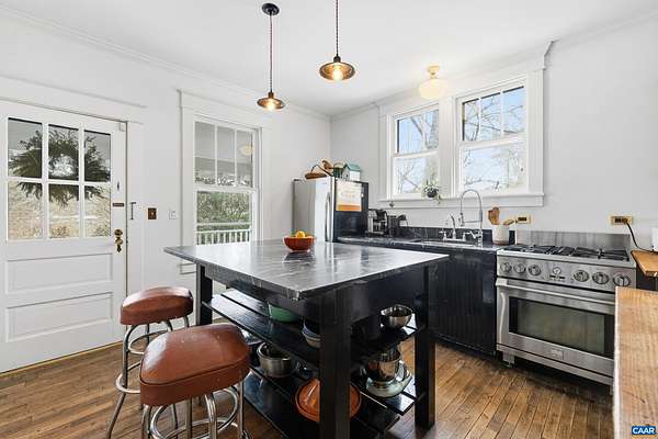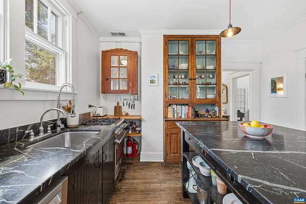 Some homes are admired on the page--this one is felt the moment you step inside. This classic Craftsman bungalow, celebrated by Garden & Gun & Southern Living, blends architectural soul w/ modern livability.The main residence honors its era while embracing thoughtful upgrades: Brazilian soapstone kitchen counters, energy-efficient geothermal heating and cooling, two newly renovated baths, and storage that far exceeds expectations for a home of this vintage. Original hardwood floors, built-in bookshelves, and a wood-burning fireplace ground the space in warmth and authenticity, while restoration choices respect the home's historic character w/o sacrificing comfort. Just beyond the main house, a custom-built former artist studio stands as a destination of its own. Vaulted ceilings w/ exposed timber beams, abundant natural light, and a sleeping loft create a striking, flexible retreat. Complete w/ full bath & kitchenette, the space easily serves as guest quarters, creative haven, or an income-generating homestay. Outside, 2.4 acres of mature landscaping offer privacy, seasonal beauty, and a series of usable outdoor spaces. This is a property shaped by vision and craft. The bones are solid, the renovations contemporary.