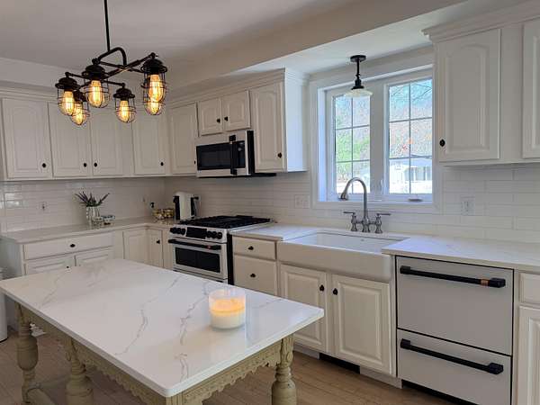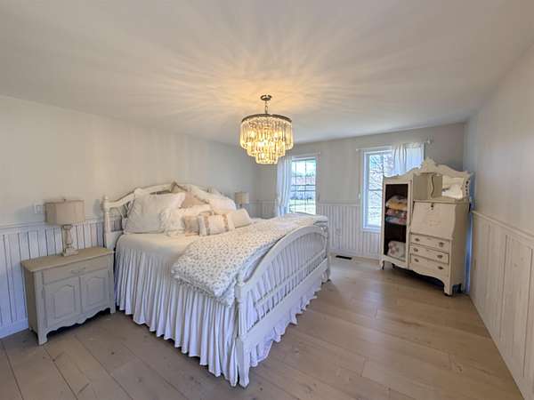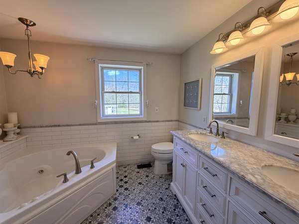 A rare opportunity to live a true homesteading lifestyle without sacrificing comfort or style! Tucked away on a peaceful cul-de-sac, this beautifully updated property offers the perfect blend of sustainability, functionality, and modern living on 1.7 acres. The property features established butterfly gardens, a dedicated vegetable growing area, and an over-sized chicken coop (or easily converted 3-stall barn) complete with solar power and electricity. A separate 2-car barn/garage with loft storage provides ample space for equipment or workshop needs. Enjoy access to 51 acres of common land and a right-of-way to the river—ideal for expanding your outdoor lifestyle. Inside, the completely renovated home offers four levels of thoughtfully designed living space. The heart of the home is a stunning kitchen featuring white quartz countertops, stainless appliances, a farmhouse sink, and an oversized island—perfect for gathering, preserving, and everyday living. The kitchen opens to a dining area overlooking the expansive backyard and gardens, creating a seamless indoor-outdoor connection. The sun-filled family room has a vaulted ceiling and the option to restore a gas fireplace; a formal dining room with wainscoting, a large formal living room, first-floor laundry and powder room. Upstairs, you’ll find three spacious bedrooms, including a private primary suite with a walk-in closet and spa-like bath featuring a jetted tub and separate shower. A walk-up attic offers future expansion potential where the wood plank flooring has just been installed. The lower level adds even more flexibility with a home office, utility space, and a bonus storage room ideal for pantry overflow or storage. Energy efficiency and preparedness are top priorities here, with solar power and a whole-house automatic generator providing greater self-sufficiency