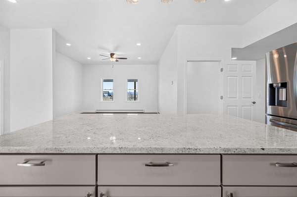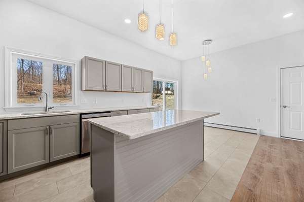 Welcome to this beautifully crafted contemporary Cape, newly built and ready for you to call home. Nestled on a picturesque 1.5+ acre corner lot at Windy Wood Road and Countryside Drive in Barre Town, this home offers breathtaking long-range mountain views, including Camel's Hump. Designed for modern living, the open-concept layout is bright and inviting. The kitchen is a true centerpiece, featuring granite countertops, a spacious island, and sleek stainless steel appliances. High ceilings enhance the airy feel of the kitchen, dining area, and living room, creating a warm and welcoming space. The main-level primary suite is a peaceful retreat, complete with generous closet space and a private ensuite bathroom. A convenient guest half-bath is also on this level. Downstairs, the full walkout lower level offers two additional bedrooms, a 3/4 bathroom, a cozy study nook, and a dedicated laundry room with extra utility space. Efficient propane-fired hot water heating with multiple zones, including radiant heat on the lower level, ensures year-round comfort. Enjoy Vermont's beauty from the large covered porches at both the front and back of the home. An oversized, finished two-car garage provides ample space for vehicles and storage. Just completed and move-in ready--don't miss this opportunity to be the first to enjoy this exceptional home!