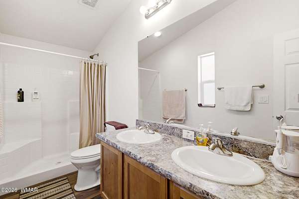 - Double Vanity, Full Bath, Kitchen/Dining Room Combo, Master Downstairs, Shower, Split Bedroom, Tub/Shower, Vaulted Ceiling(s)