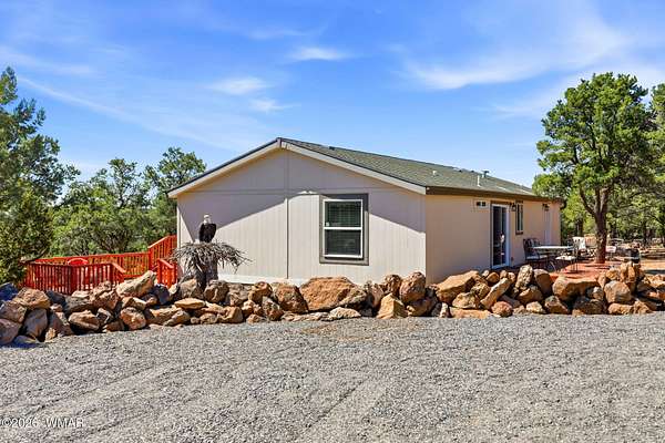 From Show Low take US 60 East approximately 13 miles to County Road 3026(just past the 3d Storage units on the left) and follow ACR 3026 around and 3026 turns into ACR 3025 which runs into ACR 3027. Turn right onto ACR 3027 and left on ACR 3030 to the first property on the left to 3 County Road 3030 to the property and the sign. Mailing address of the property is 3 ACR 3030, Show Low, Arizona