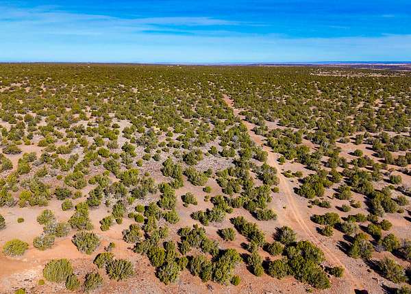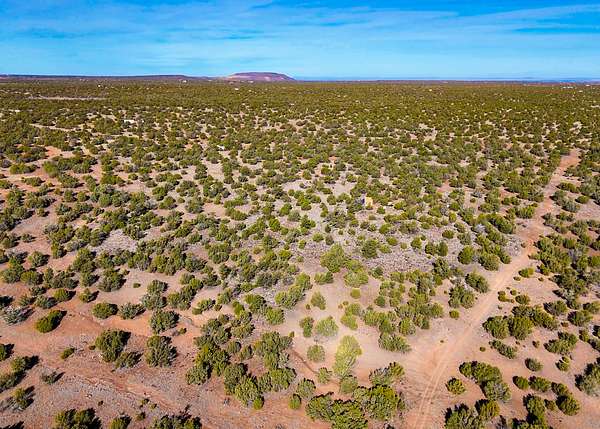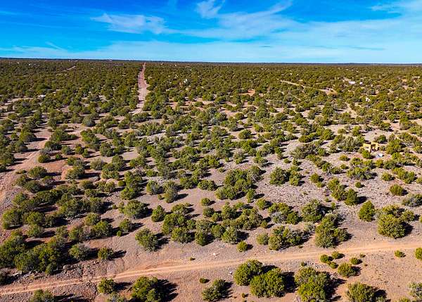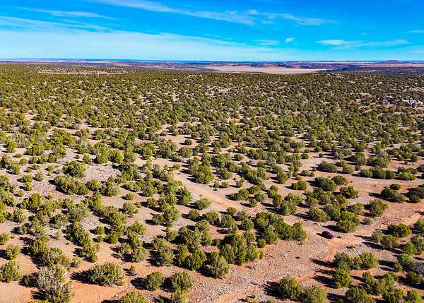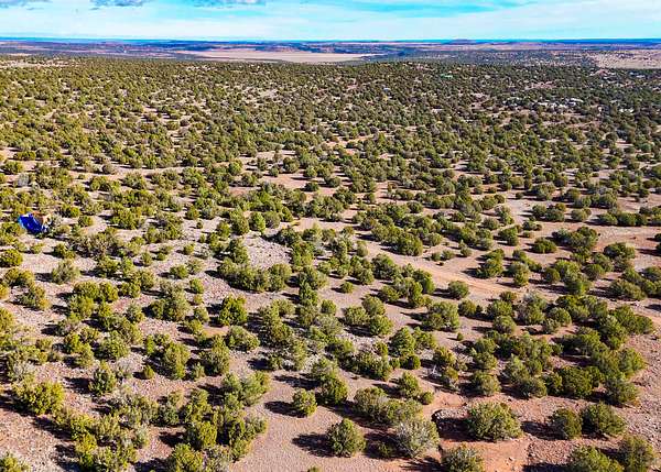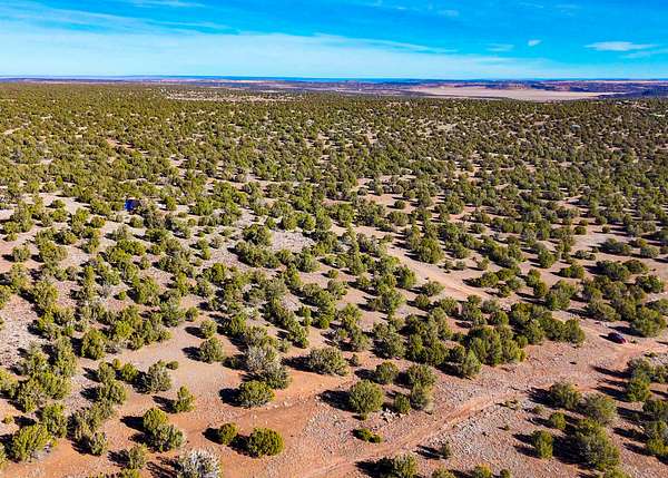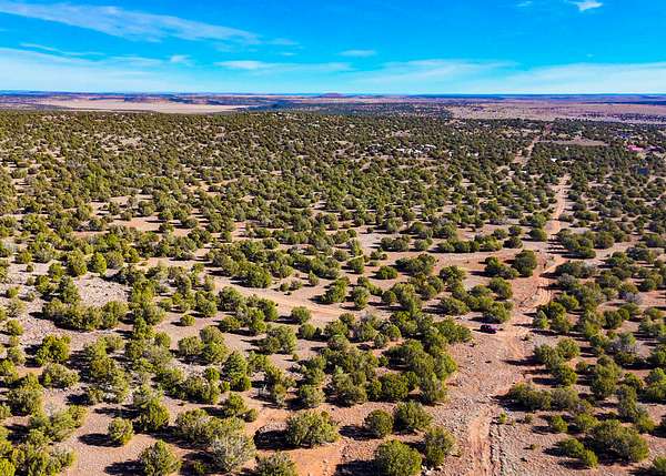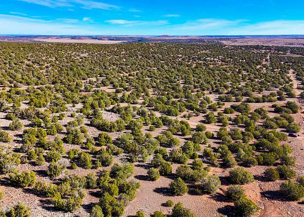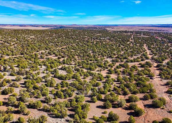 The land is situated in a sparsely populated area characterized by wide-open views, juniper trees, pinyon pine, sagebrush, and native desert grasses that reflect the natural environment of northeastern Arizona.