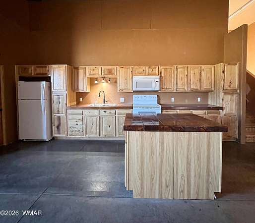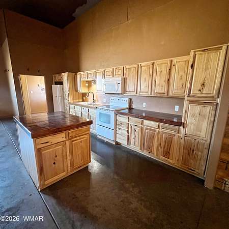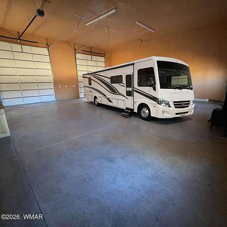 Ever pulled into a crowded RV park and thought, ''There has to be a better way''? There is. It's called owning 22.54 acres in Alpine, AZ, where the views are 360 degrees , the air is crisp, and the local herd of 100+ elk casually strolls through like they're on payroll. This 2,400 sq ft log-sided barndominium is what happens when a luxury garage levels up. Two massive bay doors open to a space big enough to park multiple RVs inside. Not next to. Not under a tarp. Inside. Bring the motorhome. Bring the fifth wheel. Bring the side-by-sides. Bring the tractor. There's still room left over for ''future ideas.'' Inside, you get vaulted ceilings, a wood-burning stove that laughs at Alpine winters, and a full kitchen with island, range, microwave, and refrigerator, because mountain legends need tacos to The bathroom? Heated floors and a large walk-in tiled shower. Because we're outdoorsy, not uncivilized. There's a serious utility/storage room with washer, dryer, water heater, and a 1,500-gallon water storage tank. An unfinished loft stands ready for extra guests, teenagers, or that friend who only came up for one night but decided to stay for five! Now let's talk strategy. With RV hookup and clean-out already in place, this could easily become an RV lover's mecca on Airbnb. Imagine offering secure indoor RV parking, full kitchen access, a real bathroom with heated floors, and front-row elk viewing. That's not camping, that's glamping with bragging rights! Let the property help pay for itself while you enjoy it whenever you want. What can you do with the massive covered patio? Outdoor gathering space, extra RV parking, or the future site of legendary Alpine stories. The private well keeps you independent. The acreage gives you room to build your dream cabin someday, or keep this setup exactly as it is and enjoy the most overqualified RV headquarters in the White Mountains. This isn't just property. It's basecamp. It's freedom. It's elk season year-round. Own the land. Park everything. Watch the herd. Repeat.