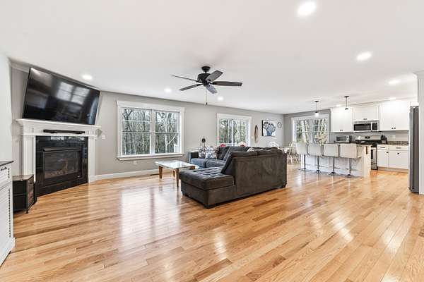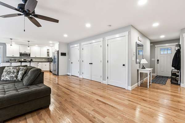 This beautifully built 2021 ranch in Cape Neddick offers the perfect blend of modern comfort, privacy, and convenience. Set on just over 2 acres, the home enjoys a peaceful, secluded setting with surrounding hills that naturally buffer highway noise, creating a tranquil retreat only minutes from everything the area has to offer. The primary living space features 2,606 square feet of open concept living with 3 bedrooms and 2 full bathrooms. Additionally there is a 594 square foot ADU apartment with 1 bedroom and 1 full bathroom located in the walkout basement. Hardwood floors run throughout, complemented by central air conditioning and high-quality finishes that reflect the home's recent construction. Every major system and component dates to 2021 along with a brand-new water filtration system installed in January 2026 creates true turnkey peace of mind. The open and functional ranch layout is ideal for both everyday living and entertaining, with seamless flow between living spaces and easy access to the outdoors. Step outside to enjoy the natural surroundings, where a gentle stream runs just beyond the backyard, adding to the home's serene atmosphere. The ADU mirrors the quality and modern feel of the primary residence, making it a valuable and versatile asset. Use it for guests, extended family, or extra income with its proven long term rental history. Despite its private setting, the location is exceptional. Both Ogunquit Village and York Beach are less than a 10-minute drive away, providing quick access to beaches, dining, shopping, and year-round coastal charm. The Mount Agamenticus Conservation area provides hiking and walking trails within a 10 minute drive. Easy access to the back roads makes traveling during the busy summer time a breeze! This is a rare opportunity to own a nearly new, single-floor home with an ADU in one of Southern Maine's most desirable coastal communities offering privacy, modern amenities, and an unbeatable location.
