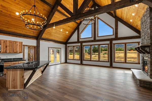 Brand new 2,040+/- SF home on 2.27+/- acres in the sought-after Homestead Subdivision, offering breathtaking views of the Tobacco Root and Ruby Mountain Ranges. Built with quality and durability in mind, this residence features an insulated concrete form (ICF) foundation and LP SmartSide siding for long-lasting performance. The main living area boasts vaulted ceilings with beams and dramatic floor-to-ceiling windows that fill the space with natural light while framing the stunning mountain scenery. A natural gas fireplace with impressive rock surround creates a warm and inviting focal point. The open-concept kitchen showcases concrete countertops, stainless steel appliances, and abundant workspace. An office or bonus room is conveniently located just off the front entry, ideal for working from home. The spacious primary suite provides a private retreat with a shower, soaker tub, and a generous 6' x 12' walk-in closet. Additional highlights include a 444+/- SF attached garage and a layout designed for both everyday comfort and entertaining. Experience modern comfort, high-quality construction, and the beauty of Montana living in this brand-new property, perfectly positioned for both privacy and accessibility to local amenities.