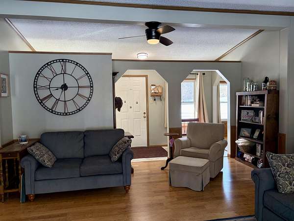 Set on just over 6 acres, this beautifully maintained three-bedroom, two-bath single story home offers the perfect combination of space, privacy, and modern updates - including a generator hookup and Central air! Tucked back from the road with a paved driveway, the setting provides a peaceful retreat while still being conveniently located. The exterior features a covered front porch, an oversized two-car garage with automatic door openers and generous storage space, along with a separate insulated shed with power that is currently used as a workshop. A fenced-in backyard and new deck create an ideal outdoor living space for relaxing or entertaining. Inside, the home showcases numerous updates since ownership including, but not limited to new lighting throughout most of the rooms, a new sliding glass door, custom tile shower, & flooring in the entry. The spacious living room overlooks the private back yard. The kitchen is adjacent to the living room and is complete with a butcher block peninsula/eating area that flows into the living area, a pantry, stainless steel appliances, and gas range. A formal dining room provides a dedicated eating space, while a separate office or second living area adds flexibility to suit your lifestyle. The primary suite is thoughtfully designed, featuring a walk-in closet, double vanity in a dressing area, and a stunning custom tile shower in the renovated bathroom. Two additional bedrooms and a full bath are located on the opposite end of the home, offering privacy and functionality. A laundry area has additional cabinet storage above and has another door to the back yard. With its single-level living, quality updates, and expansive lot, this property delivers comfort, versatility, and a serene setting.