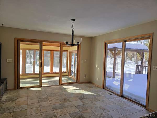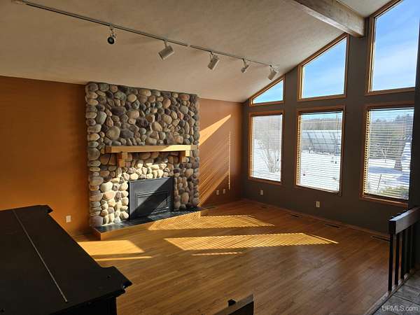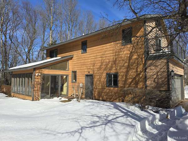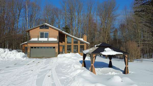 Welcome to 3 Hidden Creek Drive, where 13.26 beautiful acres and a peaceful 100 feet of waterfront create the perfect balance of nature and comfort — all just 10 minutes from downtown Marquette. With Cherry Creek flowing through the property, a garden area, solar panels, and room to roam, this is Upper Peninsula living at its finest without sacrificing convenience. Step inside and you’re immediately greeted by soaring ceilings, abundant natural light, and a stunning stone gas fireplace anchoring the spacious living room. Warm wood flooring and an open, airy layout make the space both impressive and inviting. The recently remodeled kitchen features ceramic flooring, granite countertops, a countertop stove, a gas grill, and KitchenAid appliances. Whether you prefer hosting in the formal dining room, casual meals at the breakfast bar, or morning coffee in the breakfast nook, the layout offers flexibility for everyday living and entertaining. The main level also includes a generous sunroom — ideal for plant lovers or winter gardening — along with a cozy reading nook and a full bathroom. Upstairs, you’ll find all three bedrooms, including a spacious primary suite with dual sinks, granite countertops, a walk-in closet, and a private attached bath. Two additional bedrooms and another full bathroom complete the second floor. The lower level offers a large recreation room, sauna, abundant storage, 10.4kwp capacity solar, and a wood-burning furnace for supplemental heat — a smart bonus for efficiency and comfort during U.P. winters. Outside, enjoy the back deck and outdoor hot tub, perfect for unwinding after a long day. Two garages provide excellent storage and workspace options — one attached for convenience and a second detached garage with finished space above, ideal for a home office, studio, or overflow guest area. With lower township taxes, solar efficiency, acreage, creek frontage, and a location just minutes from everything Marquette has to offer, this property checks boxes most buyers only dream about.