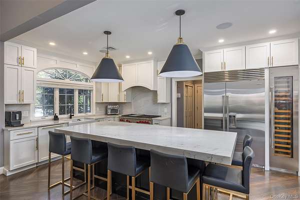 Welcome to this one-of-a-kind home that has a blend of perfect location, beautiful updates and incredible privacy. Nestled on 1.5 serene acres in Mt. Sinai and a short drive to Port Jefferson, where you can catch the ferry, shop and dine, or take a tour of the wineries that dot the surrounding area. When you drive up you will immediately see the privacy with the mature trees and lush landscaping. Prestigious private community with beach access and parking at Cedar Beach; a boatyard to store your vessel and boathouse for your gear so you can fully enjoy the Harbor; tennis, pickleball and basketball courts and even a barn. When you walk in to the grand entryway, gaze up at the tall ceilings that extend throughout the home and see where you will host friends and family in your formal living & dining room. Cooking and entertaining will be easy in your completely renovated eat-in kitchen that features top-of-the-line Wolf and Sub-Zero appliances, with no expense spared. It also includes a spacious pantry, ample storage, and a convenient mudroom with half bath. The open floor plan is accentuated by vaulted ceilings in the family room, adorned with French doors that lead to a screened-in porch complete with a fireplace--ideal for cozy evenings. Your main floor primary suite includes dual dream closets, a stackable washer/dryer, and a newly renovated five-piece spa-like bathroom. Upstairs, you'll find a loft area, three additional bedrooms, two full bathrooms, and a full-sized laundry area. Head downstairs to find the home gym, an office (or flex space for a potential bedroom), an entertainment area with a full wet bar, and an additional bathroom. Your backyard is an oasis featuring multiple patios, dining & living areas, a lush fenced-in pool, putting green with its own sand bunker, horseshoe pits, and two hidden storage sheds. Additionally, the property boasts an oversized two-car garage with extra storage, a whole-house generator, a Sonos sound system, and security cameras. You will not find a better home in the area so don't lose out on the opportunity to own this unique and wonderful home.