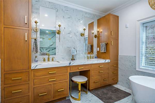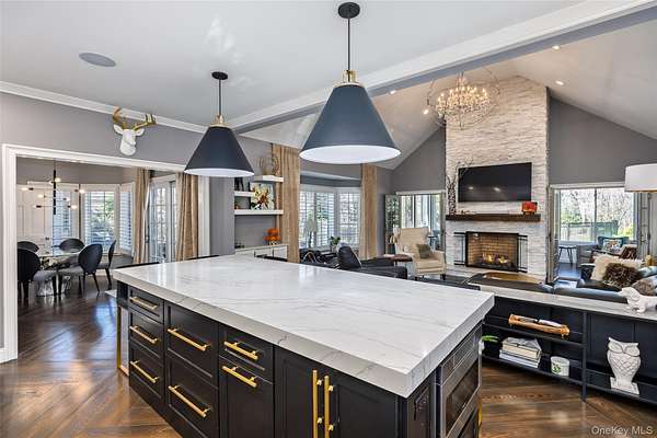 - Beamed Ceilings, Built-In Features, Cathedral Ceiling(s), Ceiling Fan(s), Chandelier, Crown Molding, Entertainment Cabinets, Entrance Foyer, First Floor Bedroom, First Floor Full Bath, Formal Dining, High Ceilings, High Speed Internet, His and Hers Closets, Kitchen Island, Marble Counters, Master Downstairs, Open Floorplan, Open Kitchen, Original Details, Pantry, Primary Bathroom, Recessed Lighting, Sauna, Soaking Tub, Sound System, Storage, Walk Through Kitchen, Walk-In Closet(s), Washer/Dryer Hookup, Wet Bar, Whole House Entertainment System, Wired For Sound