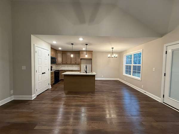 Planned build is a one-level, three-bedroom home with a two-car garage, super spacious floorplan, vaulted ceilings, and an open-concept kitchen with an island.