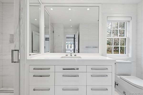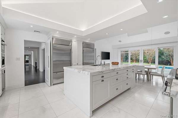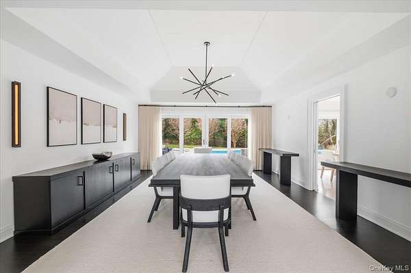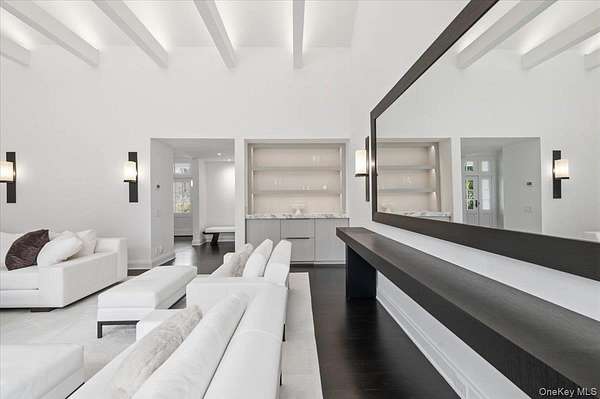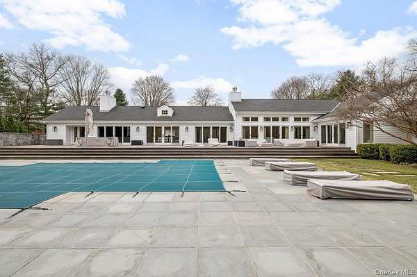 Welcome to 3 Horseshoe Road in the Arches section of Old Westbury. Decorative gates and exquisitely landscaped grounds introduce this sophisticated Hamptons-style ranch, where timeless elegance and modern luxury come together in one of the village's most coveted neighborhoods. Thoughtfully designed with exceptional scale and refined detail throughout, the home offers a seamless blend of comfort, beauty, and function. Inside, sunlit interiors and state-of-the-art amenities define the home's sophistication, while the gracious layout is perfectly suited for both everyday living and grand entertaining. The private bedroom wing is thoughtfully separated from the home's work and entertaining spaces by a dramatic living room with cathedral ceilings, a gas fireplace, a well-appointed bar, and direct access to the outdoor deck and pool. Just beyond, the expansive eat-in kitchen is appointed with Sub-Zero refrigeration and Wolf cooking, with a large center island anchoring the space and serving as a natural focal point for gathering and entertaining. Connected to the kitchen, the elegant dining room offers seating for 10, ideal for formal dinners and special occasions. The work wing of the home includes a private office with a full bath, easily serving as a fifth bedroom for extended family or guests. Additional highlights include generous storage, a laundry area, and access to a three-car garage with the potential for lifts, perfect for the car enthusiast. Outdoors, the property transforms into a private resort-like retreat, highlighted by a stunning hotel-style pool surrounded by lush landscaping designed for privacy and tranquility. A convenient side entrance just off the pool leads to a full bath, offering an ideal space for guests to refresh after a day of outdoor entertaining. Set within the prestigious Village of Old Westbury and located in the acclaimed Jericho School District, this exceptional residence captures the essence of luxury living on the North Shore of Long Island. Full house Generac generator and all furnishings and personal property are included in the asking price of home.