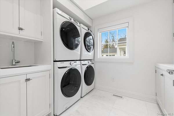 - Central Vacuum, Chefs Kitchen, Crown Molding, Dry Bar, Eat-In Kitchen, Entrance Foyer, First Floor Bedroom, First Floor Full Bath, Formal Dining, High Ceilings, His and Hers Closets, Kitchen Island, Marble Counters, Master Downstairs, Open Kitchen, Primary Bathroom, Recessed Lighting, Smart Thermostat, Soaking Tub, Sound System, Tray Ceiling(s), Walk-In Closet(s), Washer/Dryer Hookup, Wet Bar