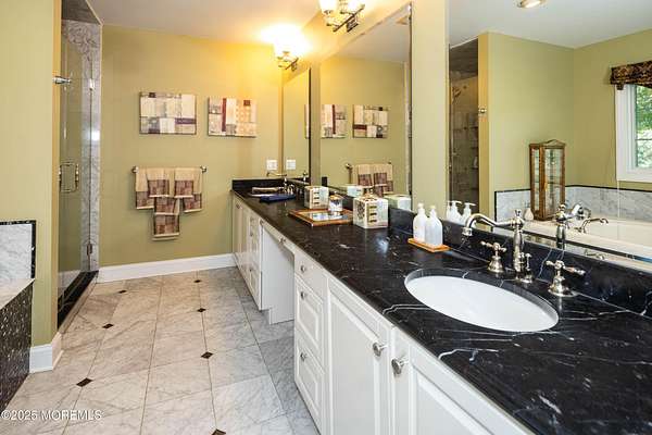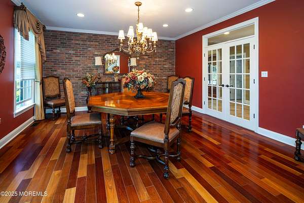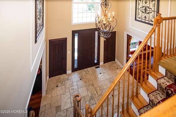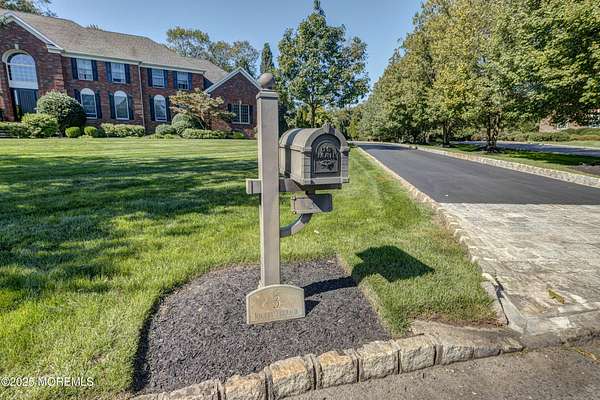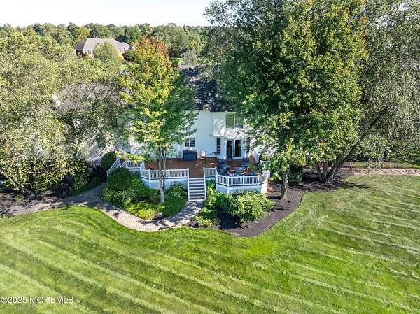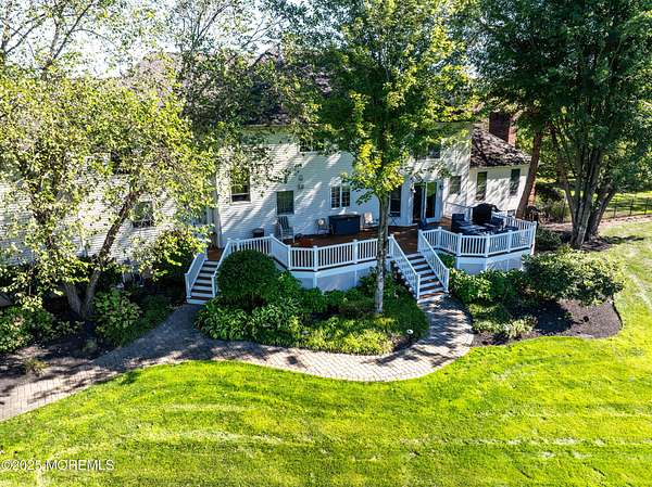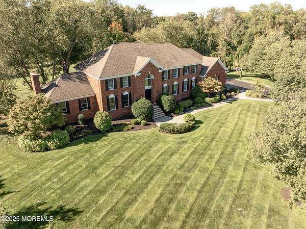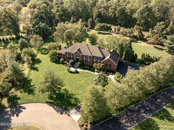 Welcome to this stately 5-bedroom, 7-bath custom 3-sided brick Colonial tucked away at the end of a quiet cul-de-sac in the heart of Colts Neck's iconic horse country. Perfectly poised on over 2 acres of manicured grounds, this home combines timeless traditional charm with all the modern luxuries you desire. Step inside and be dazzled by sunlit, spacious rooms boasting rich hardwood floors, elegant decorative moldings, and cozy fireplace. Entertaining is effortless with a surround sound system throughout and a seamless flow that invites gatherings both large and small. The lower level offers a full finished basement with kitchenette, and dedicated spaces for a playroom and exercise room, all designed for maximum enjoyment. Outdoors, you'll discover your own private paradise with an new expansive cedar deck overlooking serene, open green space, a setting made for summer barbecues, family celebrations, and quiet evenings under the stars. All of this in an enviable Colts Neck location, just minutes from the Garden State Parkway, Delicious Orchards, NJ's beautiful beaches, Red Bank's acclaimed restaurants, and Pier Village's vibrant boardwalk scene.