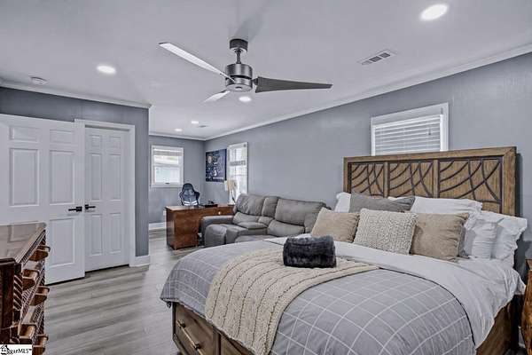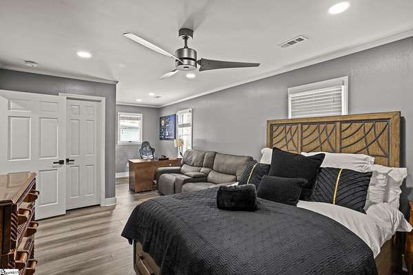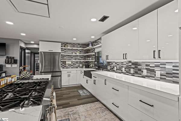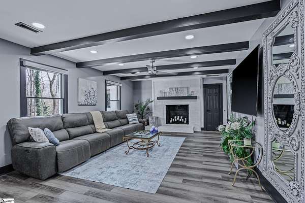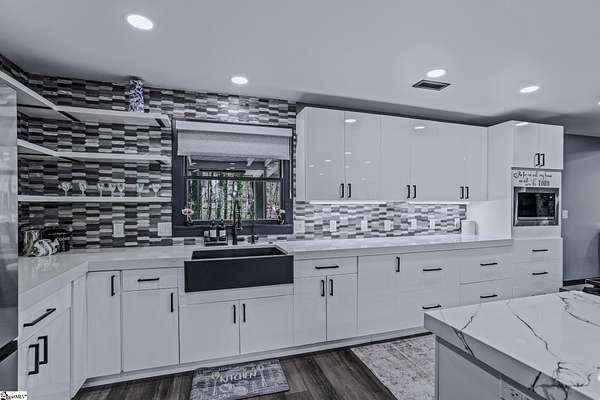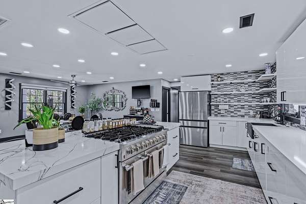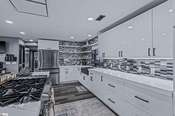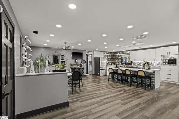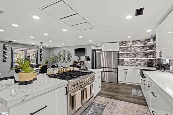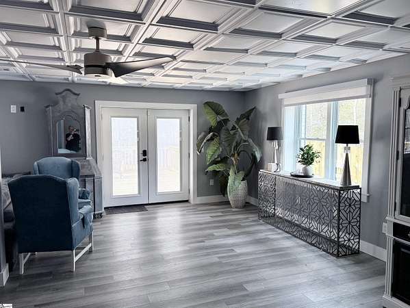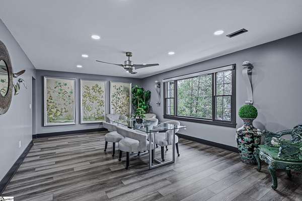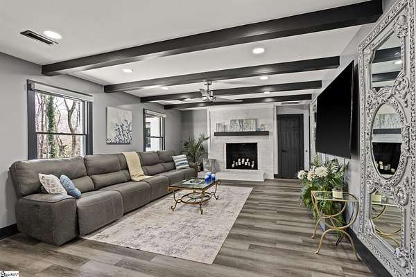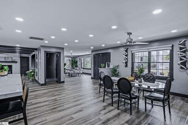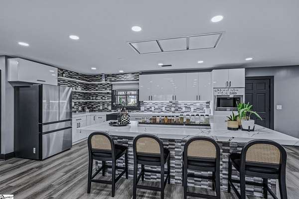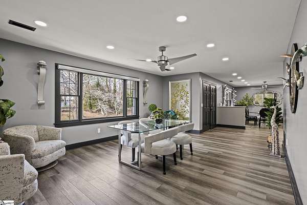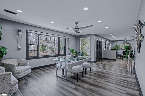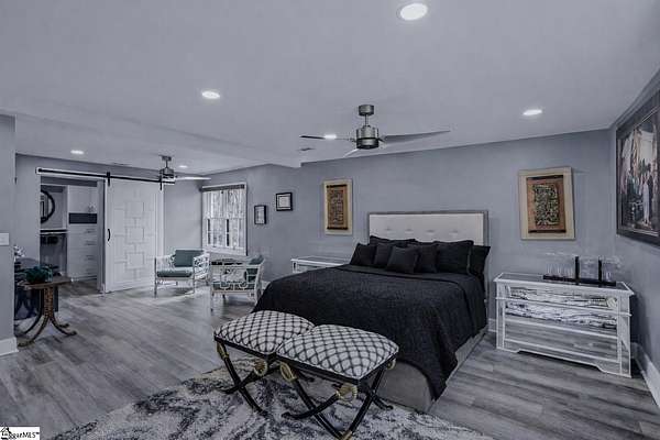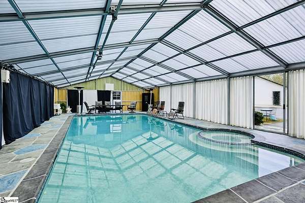 Welcome to a stunning contemporary estate with 5500 sq. ft. estate nestled on 1.50 private acres in the heart of Mauldin, SC. This meticulously designed residence boasts four spacious bedrooms, including two exquisite master suites, each featuring en-suite bathrooms for ultimate privacy and convenience. Each bedroom is thoughtfully designed with generous closet space and large windows that offer picturesque views of the surrounding landscape. A home of this caliber is a rare find in Mauldin Expansive yard – Plenty of space for swing sets, sports, and backyard adventures. With its blend of luxury, privacy, and modern convenience, 3 Kingsley Court offers an unparalleled living experience. Indulge in the grandeur of estate living while being just moments from premier shopping, dining, and top-rated schools. Designed for both luxury and functionality, the property features three expansive decks, perfect for outdoor gatherings or simply enjoying the serene surroundings. A screened-in porch adding an additional layer of comfort, allowing you to savor the outdoors while being sheltered from the elements. The grand living spaces provide an inspiring backdrop for hosting clients, celebrating milestones, or simply unwinding after a long day. As you enter, you’re greeted by an expansive living area that seamlessly connects to a gourmet kitchen, complete with state-of-the-art appliances, a large island, and ample storage. This stunning covered pool area is designed for ultimate relaxation and enjoyment, featuring a dedicated bathroom that ensures privacy and convenience. Whether you’re hosting a summer gathering or enjoying a quiet evening swim, this space offers luxurious comfort year-round, making it an ideal retreat for both entertaining and unwinding Security is paramount in this residence, featuring a comprehensive security system with 16 strategically placed cameras and door cameras for all six entrances, providing peace of mind and safety for you and your loved ones. With its blend of cutting-edge amenities, spacious living areas, and an expansive outdoor setting, this home is a true sanctuary that offers both modern luxury and a connection to nature. Experience the ultimate in contemporary living with every thoughtful detail designed for your comfort and security. A fully fenced estate, and two private workshops a, this property allows you to entertain, build, and innovate—all in one location. Nestled in a prime Mauldin location, this estate provides quick access to Greenville’s business hubs, premier dining, elite training facilities, all while maintaining complete seclusion.