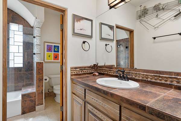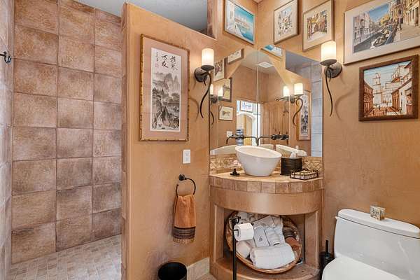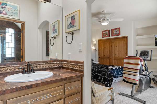 - Beamed Ceilings, Bookcases, Breakfast Area, Breakfast Bar, Ceiling Fans, Central Vacuum, Dual Sinks, Entrance Foyer, Fireplace, Great Room, High Ceilings, Home Office, Jack and Jill Bath, Jetted Tub, Kitchen Island, Main Level Primary, Pantry, Separate Shower, Walk in Closets, Wet Bar