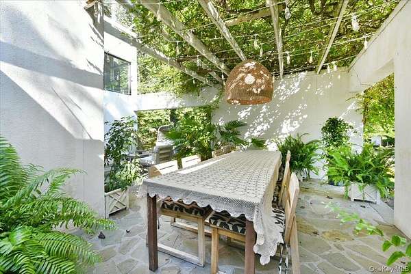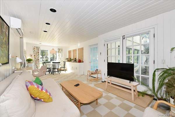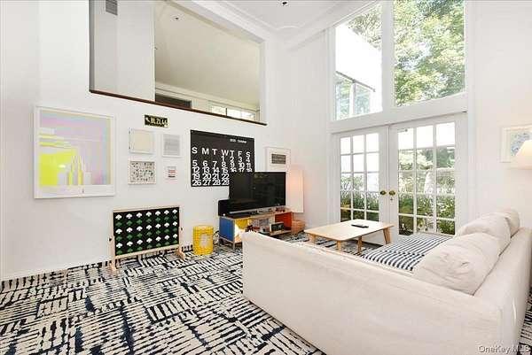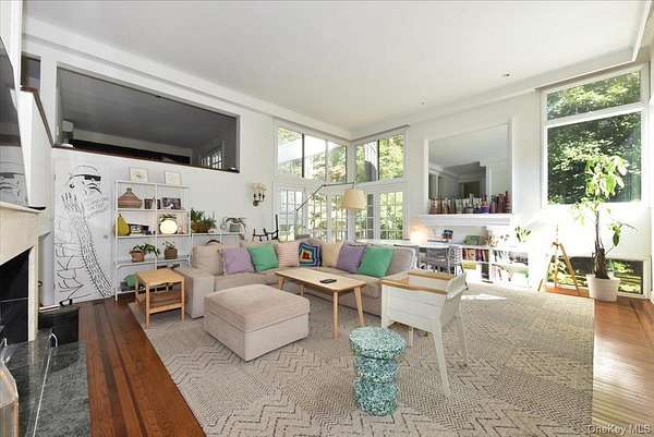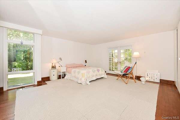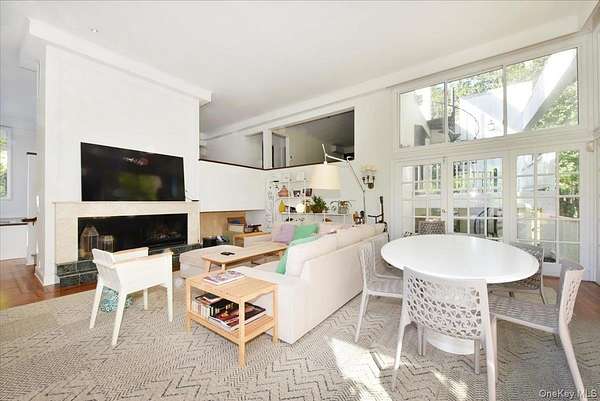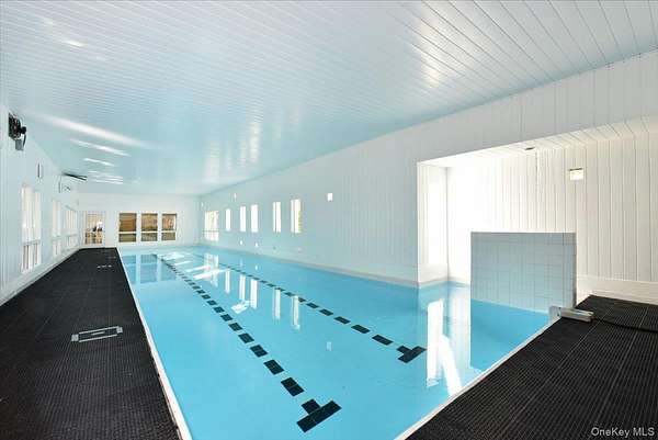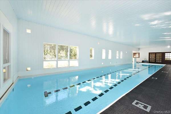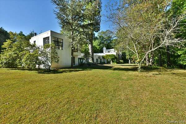 Designed by world-renowned architects Bentel & Bentel, this distinctive stucco and glass modern residence offers exceptional scale, light, and privacy on 4 secluded acres at the end of a quiet cul-de-sac. Dramatic soaring ceilings and expansive walls of glass create seamless indoor-outdoor living. The home is ideal for entertaining with multiple decks and dining terraces overlooking serene natural surroundings. A rare 60-ft indoor heated pool complex includes sauna, full bath, and lounge space - delivering a true year-round wellness retreat experience. A separate guest court provides privacy for visitors or extended stays. Located approximately one mile from the beach and convenient to Locust Valley schools, village shops, dining, and transportation.