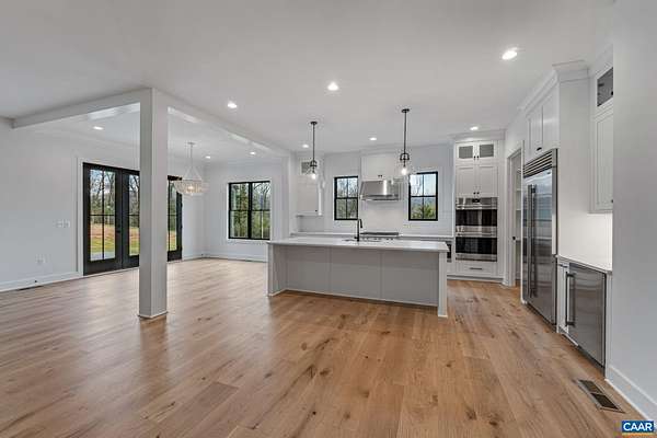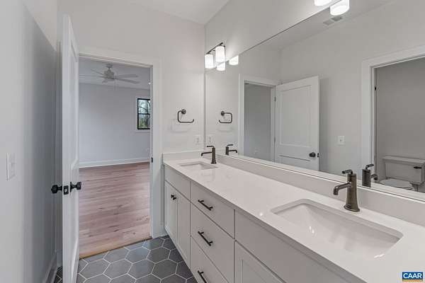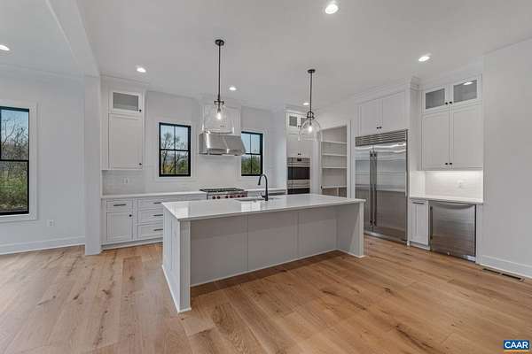 The James plan is a proposed new construction custom home in the heart of Ivy just with partial mountain views. This unique floorplan comes with 2 primary suites and an open sunroom. The open concept living area has two gas fireplaces and ample room for hosting. There will be walkout basement with tons of storage or finishing potential. Enjoy this mostly wooded 6-acre lot with private access and no HOA just minutes to Charlottesville. This lot is the perfect balance of not feeling totally secluded but also maintaining a private rear view of nature. The home site is cleared and new well has be drilled and this lot is ready for your dream home. The selections can be similar to photos provided or finish to your own taste and budget. The builder has a model/design center nearby.