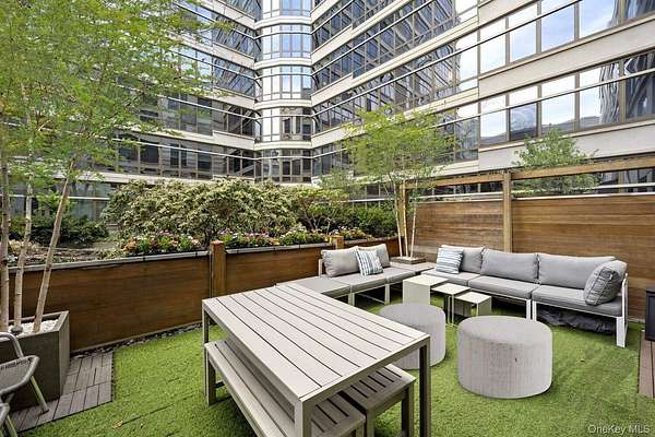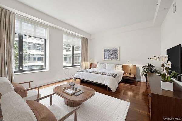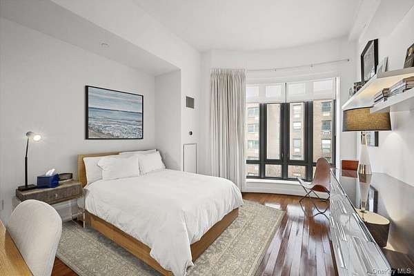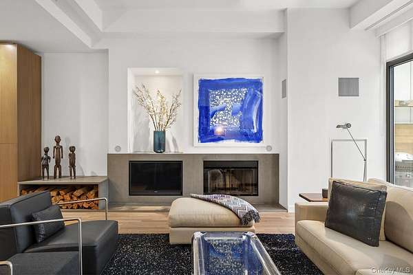 Rare West Village Waterfront Townhouse with Full Condo Amenities. Nestled along the prestigious Hudson River Esplanade in the West Village, Townhouse 3 at One Morton Square offers a rare blend of private townhouse living and luxury condominium services. This exceptional residence spans three meticulously designed levels and features a private elevator, African Doussie hardwood floors, and hand-plastered ceilings throughout. First Floor Enter through your private street-level entrance or the 24-hour attended lobby into a dramatic first floor with soaring 15-foot ceilings and an architectural glass entryway. This level includes a refined home office with a custom walnut desk and built-in storage, a staff suite with a private bath, in-unit storage, and a dedicated laundry closet. Second Floor Ascend the elegant staircase or use the discreet service entrance to reach the expansive living room, centered around a wood-burning fireplace framed by custom matte grey Italian granite. A built-in wet bar and direct access to a private terrace overlooking tranquil south-facing interior gardens make this space ideal for entertaining. The adjacent eat-in kitchen plus spacious family room boasts panoramic Hudson River views through a stunning bowed wall of floor-to-ceiling windows. Outfitted with White Oak cabinetry, grey Cosentino Silestone Eternal Serena countertops, and a suite of top-tier appliances-including a 36-inch Liebherr refrigerator, Thermador induction cooktop, Wolf warming drawer, Miele hood, and JennAir microwave-this kitchen is as functional as it is beautiful. Third Floor The private third level features a spacious, south-facing primary suite with oversized California Closets and a luxurious five-fixture en-suite bath. Two additional bedrooms, each with en-suite baths and sweeping northwest views of the Hudson River, complete this floor.One Morton Square AmenitiesEnjoy all the perks of condominium living, including a 3,000-square-foot fitness center, children's playroom, meeting and entertainment space, bike room, on-site parking garage, and the attentive services of a live-in superintendent, doorman, concierge, and full-time valet.