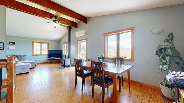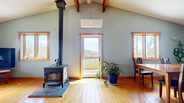 Set against a backdrop of sweeping mountain views—including Mt. Abraham in the distance—this 2-bedroom, 2-bath Westford home offers a lifestyle defined by space, nature, and year-round recreation. Enjoy access to common land with trails and a shared pond, plus nearby snowmobile trails for winter adventure. Inside, the open floor plan creates an easy, connected flow filled with natural light, anchored by a cozy woodstove and complemented by efficient heat pumps for year-round comfort. Thoughtful updates include owned solar for energy savings and a 2023 septic system for peace of mind. A standout feature is the heated 30x32 outbuilding/garage—ideal for hobbies, storage, or workspace with a new roof. Whether you’re taking in the views, exploring the land, or enjoying quiet evenings at home, this property delivers a true Vermont lifestyle with modern efficiency and flexibility.