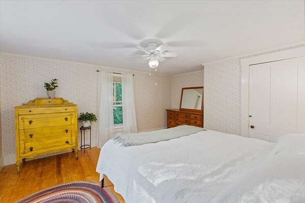Seller is offering a 3% rate buy down! This enchanting property offers the perfect blend of rustic charm & modern comfort. Situated on a well utilized lot w/ surprising privacy, this home invites you to experience the best of peaceful NE living. Boasting 4 bdrms & 2 baths, this well-maintained home offers spacious living areas that are ideal for both relaxing and entertaining. Featuring large windows that let in natural light and provide stunning views of the property's lush landscape. The warmth of hardwood floors and the cozy ambiance of a brick fireplace create a welcoming atmosphere.The eat-in kitchen has ample cabinetry, modern appliances & a soapstone sink from Francestown's historic soapstone quarry. Whether you're preparing a meal for guests or enjoying a quiet morning coffee, this kitchen is sure to become the heart of your home. Step outside & you'll find a thoughtfully designed, beautifully landscaped yard. Plenty of space for gardening, outdoor activities, or simply unwinding in nature. The back patio area is the perfect spot for entertaining or enjoying quiet evenings under the stars. The property also features both an attached & a detached 2-car garage and impressive barn w/ additional storage space, perfect for all your seasonal gear or hobby projects. Could make a great space for someone who might want a hobby farm or an accessory dwelling. Did I mention there's a chicken coop & a small greenhouse/potting shed? In town location.