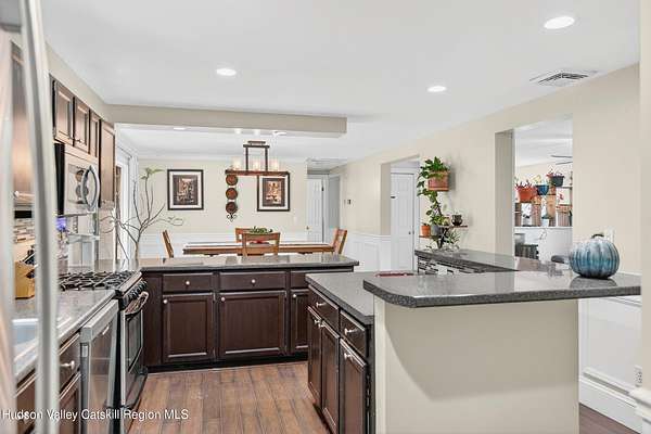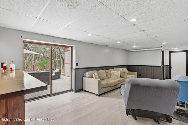 Move into this well maintained four-bedroom, two-bathroom home offering the perfect blend of comfort and entertainment. Featuring a spacious and open concept floor plan, the kitchen flows seamlessly into the main living areas of the home making the layout ideal for daily life and hosting. The kitchen offers ample counter and cabinet space, stainless steel appliances and a nicely sized pantry. The primary bedroom is conveniently located on the main floor off of the cozy living room and provides easy accessibility and privacy. On the opposite side of the house, find the additional two bedrooms and full bath to accompany. Have more room to expand your living space into the finished basement. Featuring the fourth bedroom and additional den complete with a wet bar and propane fireplace. Throughout the home, you'll appreciate the abundance of storage solutions that keep everything organized and accessible. Step outside to discover your personal oasis featuring new decks, a patio complete with fire pit for year-round gatherings, and a productive vegetable garden for fresh ingredients. Lush landscaping fills the gardens surrounding the home with color during the summer months. The generous lot size provides plenty of room for outdoor activities and future expansion possibilities. Location advantages include proximity to local attractions like Arrowood Farms, Ravenwood, and the upscale INNESS establishment. Outdoor enthusiasts will appreciate easy access to Minnewaska State Park Preserve for hiking and nature exploration, while Rough Cut Brewing Company offers local craft beverages. The vibrant town of New Paltz and historic Kingston are both within 20 minutes.