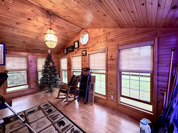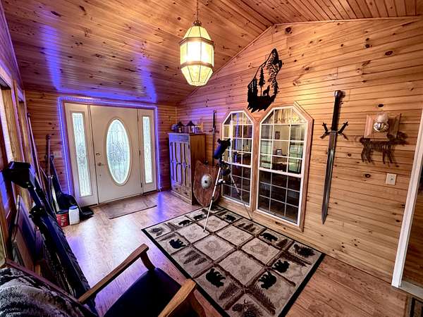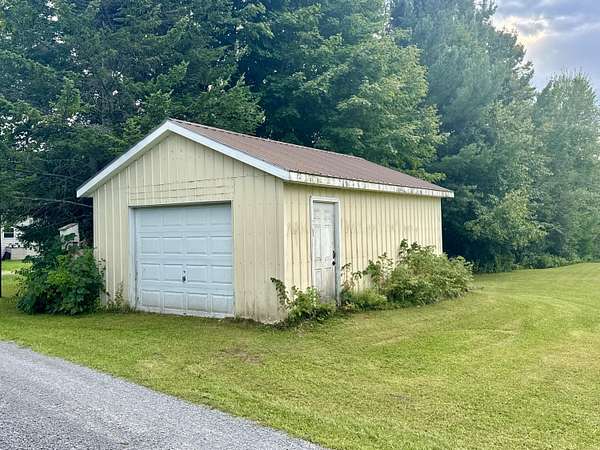 Set on nearly 7.5 picturesque acres, this charming three bedroom, two full bath ranch style home offers the perfect blend of comfort and country living. The property includes a two car detached garage, plus an additional single car garage and storage shed conveniently located across the road. A large fenced backyard with a paver patio creates an ideal space for relaxing or entertaining outdoors. Inside, you'll find an inviting open-concept layout featuring a cozy family room with fireplace and a modern mini split heating and cooling system. The spacious primary suite boasts sliding barn doors and a garden tub for a touch of rustic elegance. Located just minutes from the Canadian border and Interstate 87, this home combines peaceful surroundings with easy access to nearby amenities.