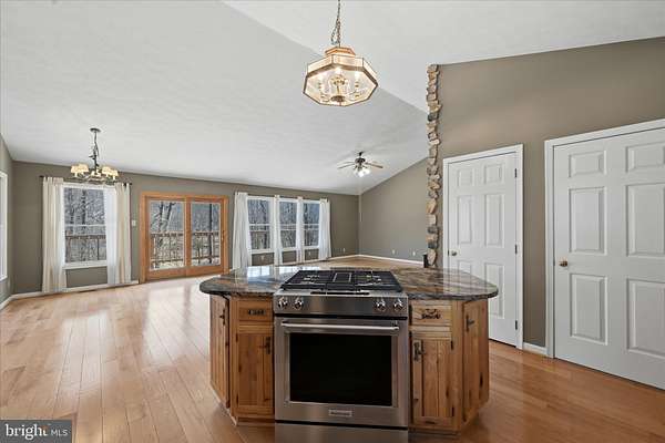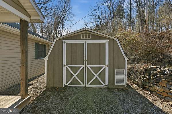 265 Feet of Private River Frontage - Your Own Waterfront Escape on 2.71 ACRES! Welcome to your own private paradise on the Cacapon River in this spacious 4-bedroom, 3 bath ranch home which offers an open floor plan and beautiful hardwood floors throughout the main level! The gourmet kitchen features upgraded granite countertops with center island, propane gas range with downdraft, stainless steel appliances, custom oak cabinetry, and a built-in pantry with convenient roll-out shelving for easy access. The kitchen flows seamlessly into the dining and living areas, where a wood stove with floor-to-ceiling stone backdrop creates a stunning focal point. The primary suite includes four closets and a private bath with granite vanity and a tiled 5-ft shower. The main level also offers 2 extra bedrooms, a generously sized hall bath with granite vanity, linen closet, and a main-floor laundry for added convenience. The fully finished lower level offers incredible flexibility with a large recreation area, workshop space, and 1-car garage, plus a 4th bedroom with hardwood flooring, three closets, and a full third bath with tiled shower. A second laundry room is also located on this level. The pool table conveys, making the space ready for entertaining. Outdoor living is just as impressive with a huge wraparound porch, including a large screened-in section off the dining area. Step down to a second-level deck before heading out to the expansive yard that leads to 265 feet of gently flowing river frontage with private access-perfect for kayaking, fishing, or simply relaxing by the water. Additional outdoor structures include a large Quonset hut for kayak and equipment storage, storage shed and carport. The community HOA offers shared river access and allows short-term rentals (Airbnb)-but with 265 feet of your own private river frontage, you may never need the community access! If you're looking for waterfront living, privacy, and flexibility for full-time living, vacation use, or rental income, this property delivers it all! Close proximity to historic Berkeley Springs and just an hour drive to Old Town Winchester.