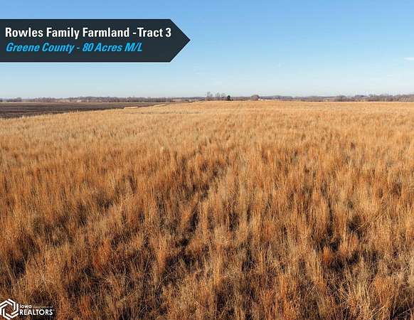 Greene County, Iowa Online Only Farmland Auction - Wednesday February 18th, 2026! I'm pleased to be representing the Rowles Family in the sale their family's 300 acres m/l. Offered as three individual tracts, these farms are located northwest and southwest of Grand Junction, Iowa in Sections 7, 20, and 29 of Junction Township, Greene County, Iowa. Tract sizes range from 63.80 acres to 156.20 acres and would make for great add-on tracts to an existing farming operation or an investment for the Buyer looking to diversify their portfolio or hedge inflation. Tract 3 consists of 80 acres m/l with 79.35 FSA cropland acres that are currently enrolled in the Conservation Reserve Program (CRP) under the State Acres for Wildlife Enhancement (SAFE) initiative, focusing on Rare and Declining Habitat and Iowa Prairie Restoration for grassland songbirds. CRP Contract Details: Contract #11983 - 79.35 Acres enrolled in the SAFE - Iowa Gaining Ground (CP38E-25) with an annual payment of $18,340 ($231.13/Acre). This contract is set to expire in September 2032. *Note on the CRP Contract: The Beneficiaries have not made a decision on the CRP contracts, and the successful bidder would have the optionality to either continue the CRP contract or choose to discontinue the farm's enrollment in CRP. Upon signing of the Purchase Agreement, the winning bidder will let the family know how they would like to proceed with the CRP contracts.
