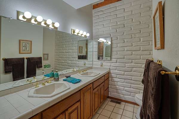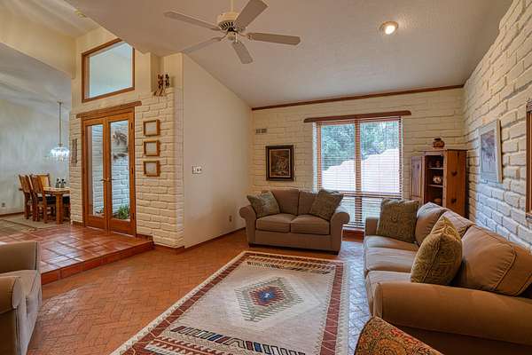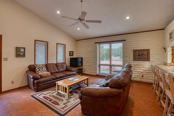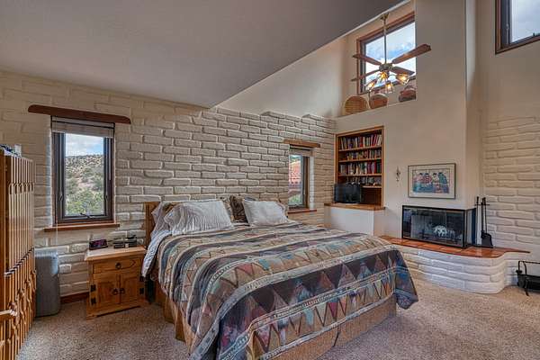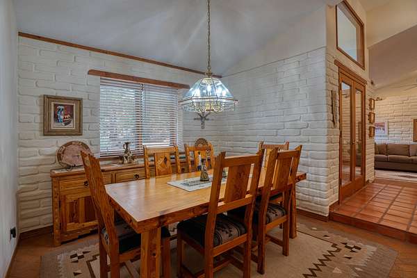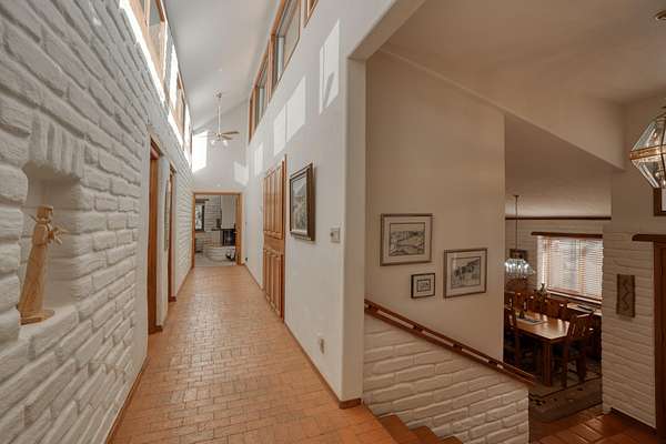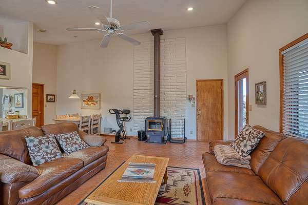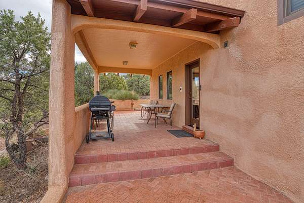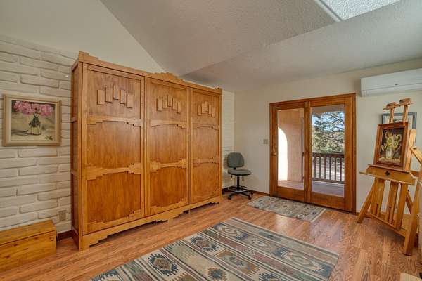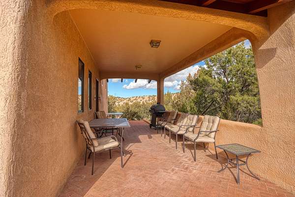 Discover this exquisite three-bedroom, four bath residence nestled in the tranquil foothills of Placitas. Enjoy unparalleled privacy on this expansive property, spanning over three acres. Surrounded by natural beauty, this generous space provides a serene retreat to escape the city. This home showcases beautifully handcrafted adobe architecture, featuring clerestory windows that invite natural light to illuminate the space. Additionally, it boasts a fully equipped workshop on the lower level, perfect for any creative project or hobbies. The combination of brick and wood flooring not only adds a stylish touch to your home but also simplifies the cleaning and maintenance process. Brick floors are incredibly durable and resistant to stains making them easy to wipe down and maintain.