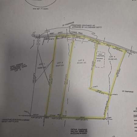 From Claremont, take Chestnut St. to the bottom of Unity Hill, take the right onto West Unity Road. Follow West Unity Road to the 3 lots with signs on the left side of West Unity Road.