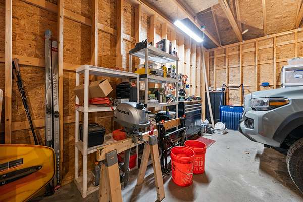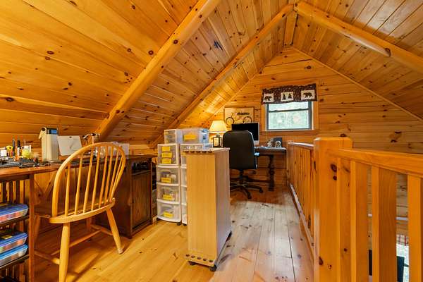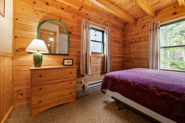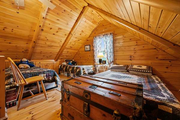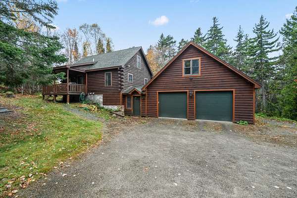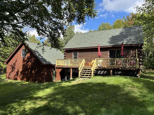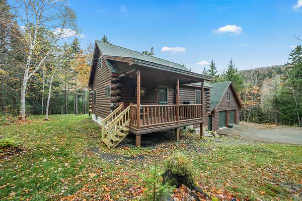 BEAVER MOUNTAIN LAKE - Moose Creek Log Chalet loaded with North Woods charm! Featuring 2 main floor bedrooms, plus large loft that will sleep a crew; open kitchen/living area with gas viewing stove, entry onto deck overlooking the lake. Finished lower level family room with 1/2 bath, mudroom entry to attached 28x28 2-car garage with walk up storage above (with potential for added living space). Gentle slope to 190' waterfront with dock, canoe/kayak rack. Well maintained home with all new appliances summer 2025, new heat pumps installed November 2025, new deck stairs/decking, on-demand generator. Move right in and enjoy, being sold mostly furnished. Super location close to town, Saddleback, Rangeley area amenities. Don't miss out on this lakeside gem - inquire today!