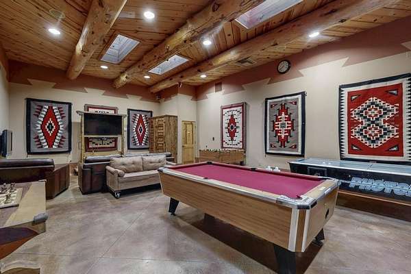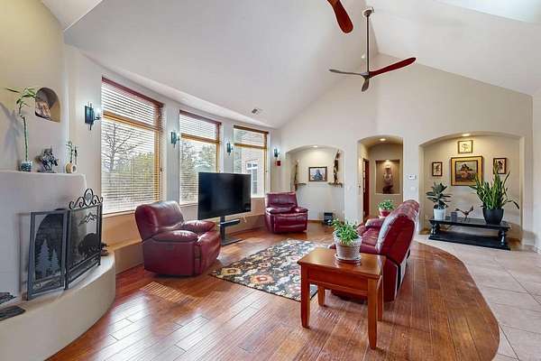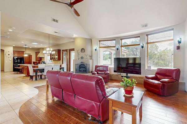 Nature Point Beauty! Featured on''Find My Country House'' (Ssn 2, Ep 4). Custom-Built Home. Discover this exceptional four-bedroom, three-bath home nestled in the serene East Mountains. This energy efficient residence has paid-for solar panels, advanced active and passive heating systems, ensuring minimal utility costs. Enjoy breathtaking mountain views. The home includes a three-car radiant heated garage, sunroom & workshop area. This home combines luxury, sustainability, and modern living in a tranquil setting. The Clubhouse is not to be missed! With a large indoor pool, gym, hang out areas, pool tables, social area, and tennis courts. You have everything you need right there at home!