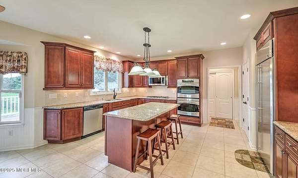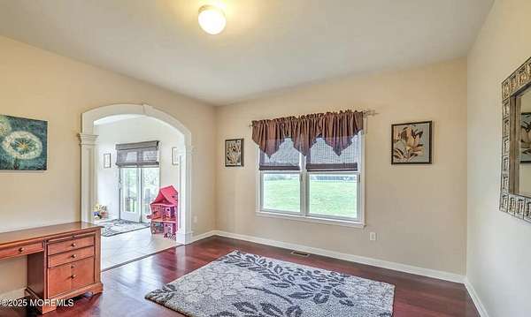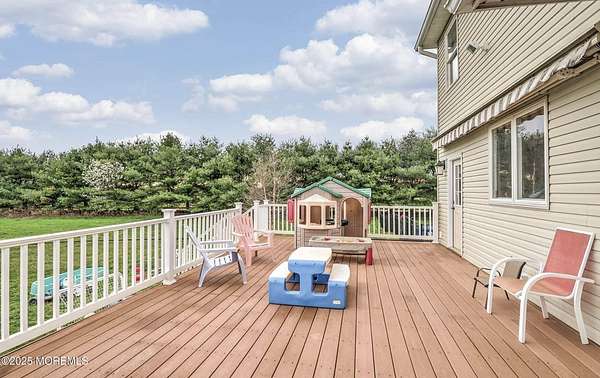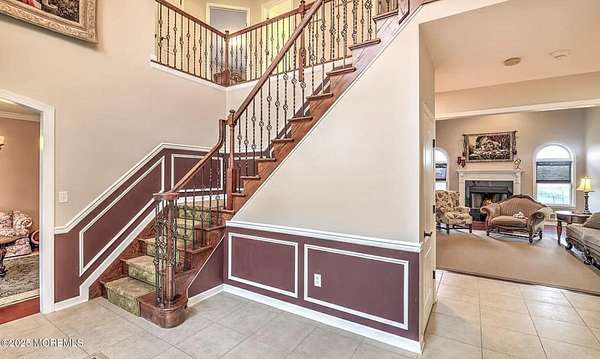 Stunning 4-bedroom, 3-bath, 5,025 sq ft Colonial in Millstone Township (built 2007) showcasing a double-door entry, wrought-iron balusters, and hardwood flooring through most of the first level and the primary suite. The chef's kitchen features upgraded porcelain tile, granite counters, and stainless steel appliances, with coordinating porcelain in the foyer, laundry, and all upgraded baths. Comfort abounds with 3-zone heat and A/C, plus a 3-car garage. A full 2,000+/- sq ft high-ceiling basement offers exceptional expansion or storage potential. Outdoors, enjoy solar panels, a Trex deck with retractable awning, and 3.83 fully usable acres-including an over-half-acre fenced dog run. A rare blend of space, quality, and convenience in a community known for its excellent schools.