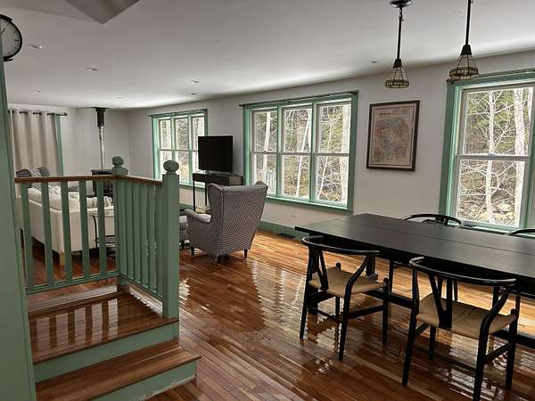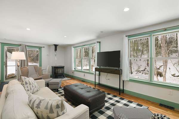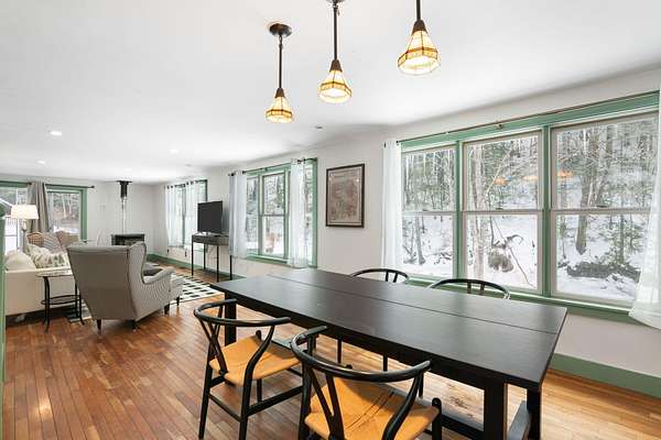 Affording you an easy stroll to the center of historic Newfane, this vintage cape combines idyllic charm and modernized, upgraded comfort. Bright & expansive, the country kitchen is bathed in natural light. The open design of the first-floor flows from the kitchen with accents of artistic tiling, to the dining/ living room. The natural beauty of this setting is drawn within by the continuous wall of windows overlooking the lazy Smith Brook below and woods beyond. Serenity radiates throughout the interior. Gorgeous and sunny, 2 acres of open yard surround the home. The first floor has a bedroom, bath and laundry. Two additional bedrooms and full bath are on the second floor. The first floor also includes an addition, built with its own entrance, unique in design with vaulted ceiling, bath, loft and an over-sized second floor bonus room. This area, once housing a gift shop, is now incorporated as living space. It remains ideal for a professional office or Bed & Breakfast. Eagerly awaiting creative utilization, the property offers a spacious, second, 880 sq ft building with a second floor and direct access, drive-in basement. This property, rich in Vermont beauty, is ready to be called home, with a variety of opportunities only limited by your imagination. Showings begin Saturday April 18th with an Open House from 11:00 to 1:00.