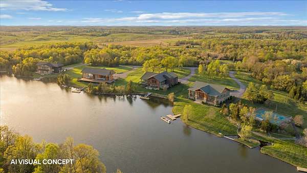 Nestled in the heart of Western Kentucky, only 2hrs from Nashville, this expansive roughly 300-acre property is a private owner's paradise or a developer's dream. Boasting THREE luxurious lakefront homes, each with stunning finishes and panoramic views. The estate offers a shared in-ground pool and overlooks a vast 60 acre private lake. For outdoor enthusiasts, the possibilities are endless – fish, boat, play tennis or hunt in the serene surroundings. A landing strip and hangar accommodate small experimental aircraft. A corporate management facility on-site ensures efficient business operations and convenience. This haven offers an unparalleled quality of life, combining privacy with a myriad of recreational opportunities. Whether you're envisioning a personal retreat or a development project, this slice of Kentucky heaven beckons. Taxes listed are for 30 Bass Court only. Individual Lakefront/Lakeview lots available and sold separately. Reach out to listing agent for details!