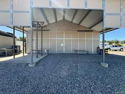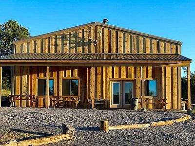 Main lodge (constructed of steel) 2000 sq ft (40x50) with 16 ft ceilings with partial second story (494 additional sq ft). This buildingis comprised of 390 sq ft of kitchen/dining area, 260 sq ft second storybedroom, 234 sq ft second story loft/office, 1,320 sq ft great room, 113 sq ft bathroom, with a 400 sq ft covered front porch area. Just behind the main lodge is a 12x12 storage building.