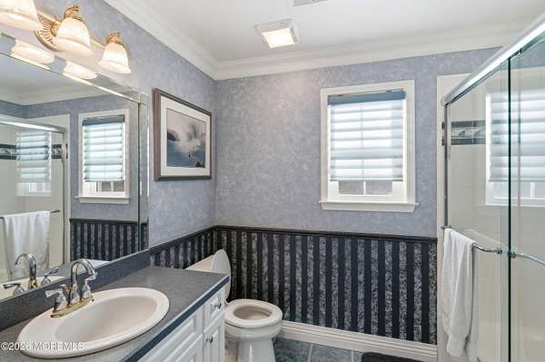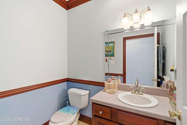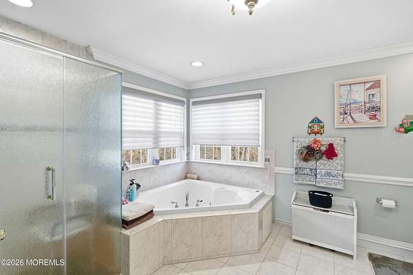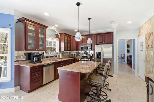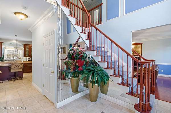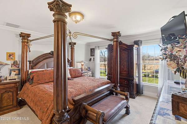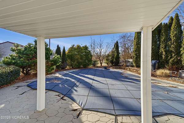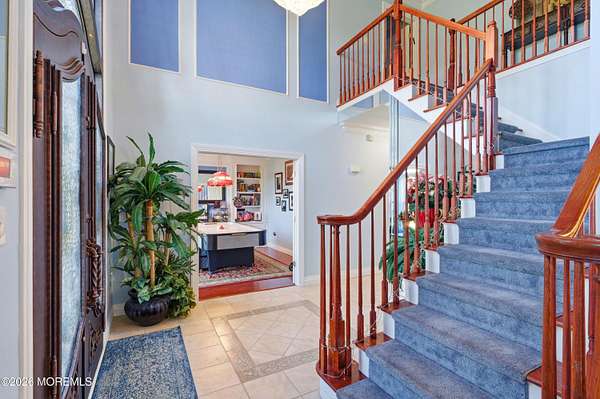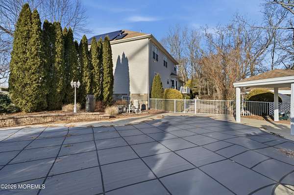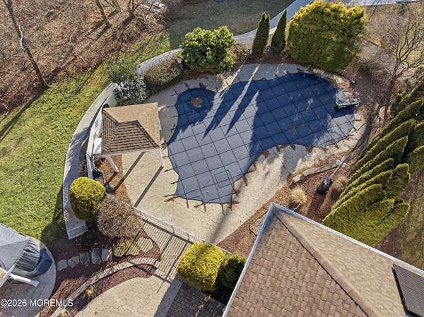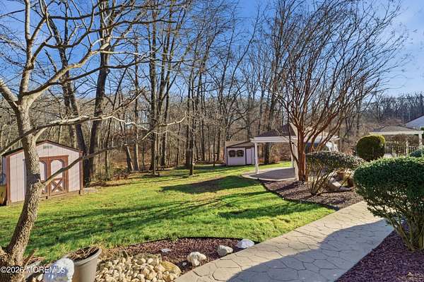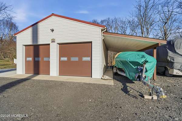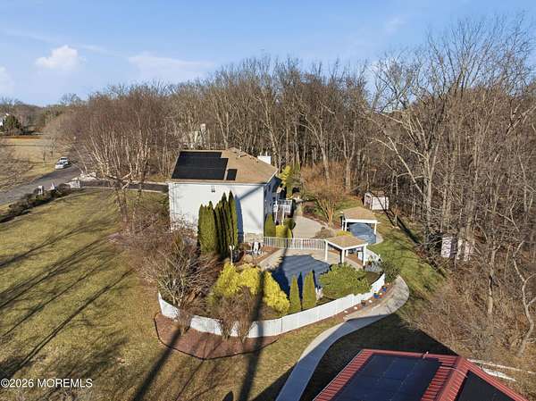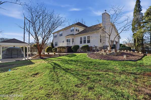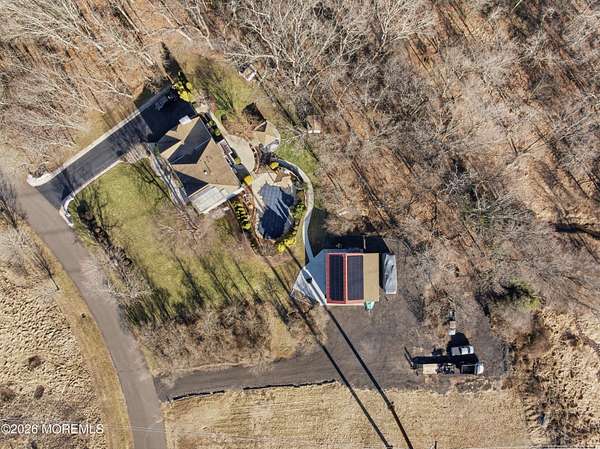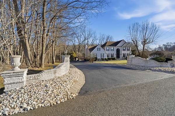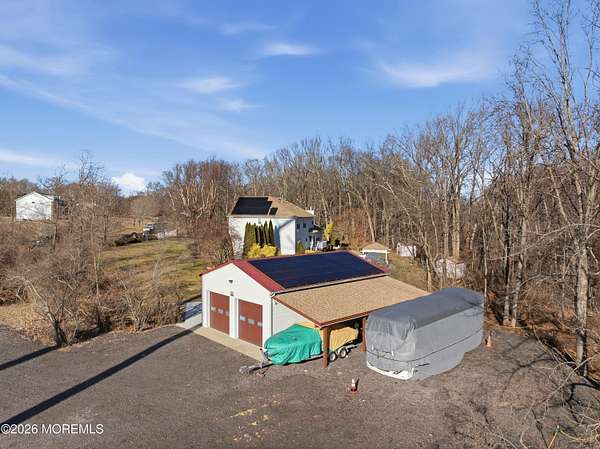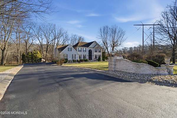 Welcome to 30 Carriage Way - Beautifully appointed 4 bed 2.5 bath home situated on a sprawling 3.6 acres. Step through the custom, Italian imported front entry way into a grand 2 story foyer. Large, functional floor plan with a bright and open kitchen featuring a huge center island, granite counters and tile backsplash overlooking an attached living room with vaulted ceilings and a gas fireplace with a custom mantle. Upstairs you'll find a large primary suite with dual walk in closets and an attached full bath. Down the hall are 3 additional well appointed bedrooms and an additional full bath. Outback, overlooking the lush landscape you'll find a large patio area including a heated in-ground swimming pool and an amazing 38 x 25 heated pole barn with it's own driveway access. 2 year old multi zoned HVAC system - stainless steel appliances - 10 zone inground sprinkler system - car lift in the main, heated garage - 3 zone alarm system - extensive hardscape - exterior lighting - 2 storage sheds with electric - 2 pergolas out back with electric and a ceiling fan - upgraded water treatment system - dual driveways - financed solar with SRECs - crown molding throughout - detailed trim work and built ins - full laundry / mud room off garage - walk in pantry - retractable foyer chandelier - located close to all major roadways and the beautiful beaches of the Jersey Shore.