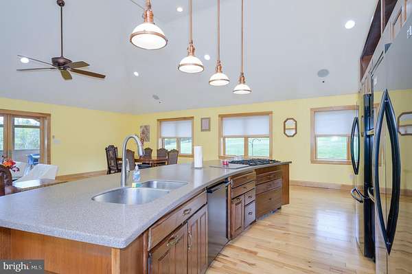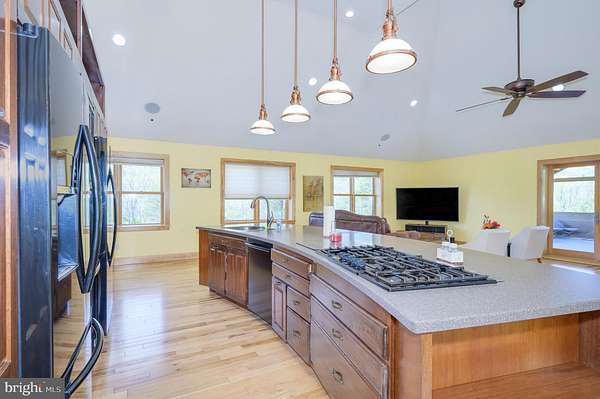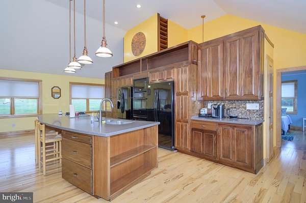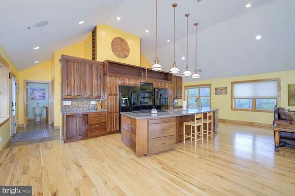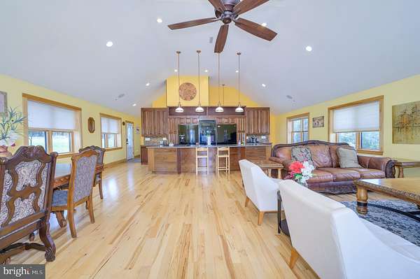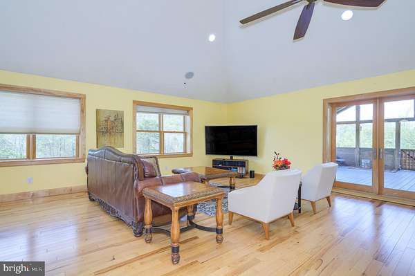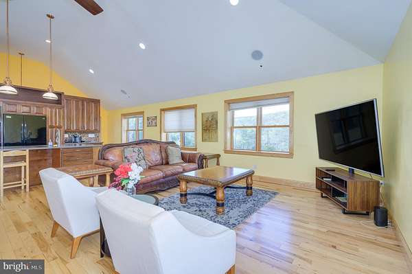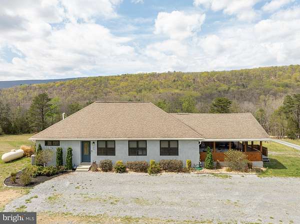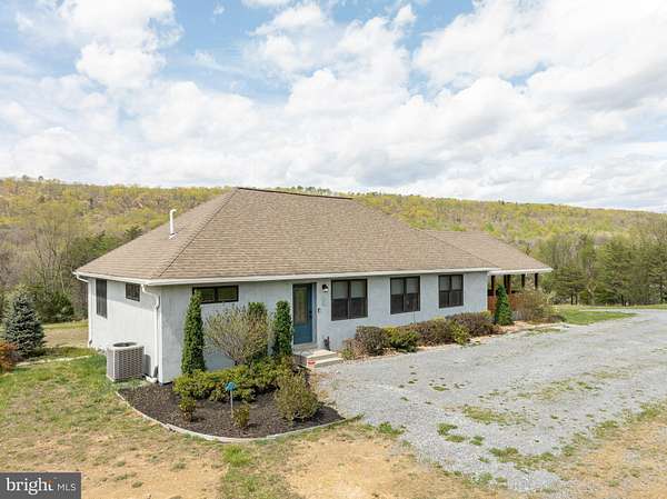 Welcome to a wonderful custom home situated on 8.76 unrestricted acres! Featuring an open floor plan with cathedral ceilings, hardwood floors, radiant heat floors, an EIFs exterior and large covered porch this type of custom construction does not come around often. The spacious great room houses the kitchen , dining and living room areas lined with windows for natural light with built in ceiling speakers throughout the home letting you truly relax in private. The gourmet kitchen is loaded with upgrades, including solid wood cabinetry all hand built by the original owner, 2 refrigerators, a double wall oven, gas cooktop with down draft system and coriander countertops. Each of the three bedrooms has its own private full bath creating three master suites, one on the main level with built in laundry and two in the finished basement. The basement also features a large gathering area, wet bar with space for a fridge and multiple walk out entrances from the common room and bedrooms. The home has an EIFs exterior making it very efficient in all seasons. The heat is delivered via radiant floor heat on both the basement and first floor levels. The heat is also a tri-zone system and has individual thermostats for the basement, first floor and master bedroom while cooling is provided via a Central AC system. Currently this home is also used part time as an Air bnb so great rental potential both part time and full time. Conveniently located right off 522 you are only minutes from Cacapon State Park and about ten minutes south of historic Berkeley Springs. Come see this one today it is only available for a limited time so if you're looking for a unique custom home this may be the one!