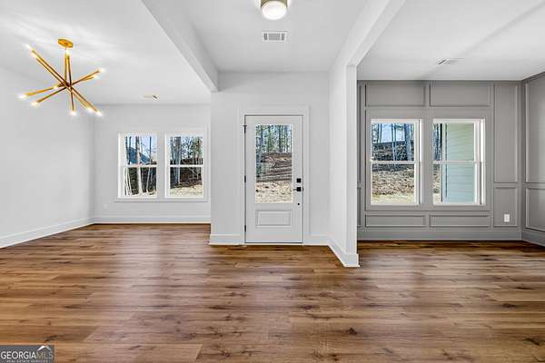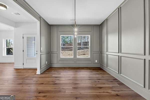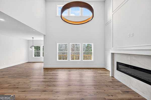 There's something special about pulling into a neighborhood and just knowing you're home. Tucked inside Walden Pond Estates, this new Craftsman-style beauty delivers that feeling from the very first glance. Step through the front door and the grand foyer welcomes you with custom trim and thoughtful details that immediately set the tone. The ceilings rise, the light pours in, and suddenly the space opens into a stunning two-story Great Room that feels both impressive and inviting. Just off to the side, the formal dining room with its elegant trey ceiling is ready for holiday dinners, birthday celebrations, and Sunday gatherings that turn into lifelong memories. At the heart of the home, the gourmet kitchen is where life naturally happens. Quartz countertops, a large center island, abundant cabinetry, a walk-in pantry, and striking herringbone tile backsplash create a space that's equal parts designer showcase and everyday workhorse. Morning coffee at the island. Homework spread across the counter. Friends gathered while dinner simmers. It all fits here. Then there's the deck. Step outside and take in the private, peaceful views that make you feel like you're miles away from everything - even though you're just minutes from schools, shopping, dining, and convenient highway access. It's the kind of backyard where quiet evenings stretch a little longer. The main-level Owner's Suite is designed to be a true retreat, featuring trey ceilings, a spa-inspired walk-in shower with dual showerheads, and an oversized walk-in closet that makes organization effortless. A private guest suite on the main level - complete with its own en-suite bath and dual walk-in closets - offers flexibility for multi-generational living or visiting family. Upstairs, a spacious loft gives you options: home office, playroom, media lounge, study space - whatever this season of life calls for. And with a full unfinished basement, this home isn't just beautiful - it's future-ready. Whether you're dreaming of expansion, storage, or creating additional living space, the potential is already built in. Designer paint colors. Modern light fixtures. Thoughtful finishes throughout. USDA loan eligibility for qualified buyers. This isn't just new construction - it's a home built for the way you actually live.