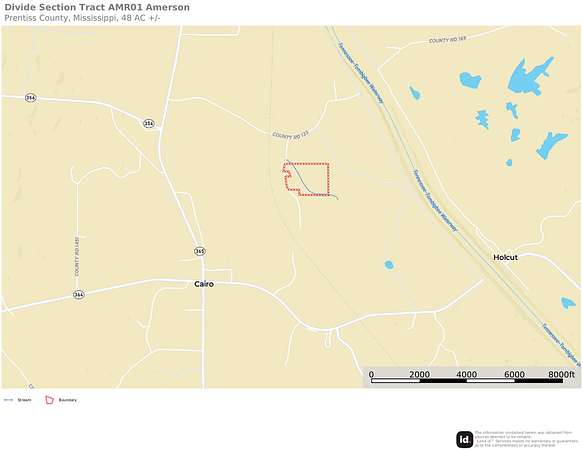Hunting & Recreation Land in Burnsville, MississippiThis +/-48 acre property near Burnsville, Mississippi, offers a great mix of natural beauty and recreational potential. Located in an area known for its abundant whitetail deer & wild turkey populations, this land provides a peaceful escape with convenient access to local amenities. Its proximity to the Divide Section Wildlife Management Area places you just steps away from some of northeast Mississippi's best hunting grounds and outdoor recreation opportunities.Great Habitat for Wildlife and Outdoor ActivitiesA small stream transects the property, providing a water source for wildlife and adding to the aesthetic appeal. The timber is a mix of mature pine and hardwood timber, and the gently rolling topography and an open understory, create an inviting environment for hunting, hiking, and exploring nature.Potential Building SitesWhether it's a cozy cabin, a hunting camp, or a permanent residence, this property offers multiple potential building sites. An old home on the land provides an opportunity for restoration into a functional retreat or hunting camp. Utilities are located at the road frontage.Located Near Premier Outdoor RecreationBeyond hunting, the property's location offers quick access to the Tennessee-Tombigbee Waterway and is a short drive to the award winning Tishomingo State Park, Pickwick Lake, and Bay Springs Lake, providing world class fishing, boating, and countless ways to enjoy the outdoors. This rare combination of quality timber, wildlife habitat, and recreation makes this property a rare find in Northeast Mississippi's vibrant natural landscape.