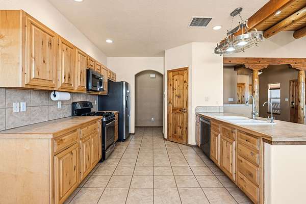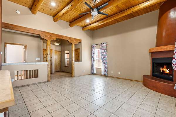 Set on 2 serene acres, this Southwestern style home blends warmth, space, and timeless character. The inviting living room features high ceilings that fill the space with natural light, while a gorgeous Kiva fireplace stands as the heart of the home, creating a welcoming cozy feel for everyday living. This home offers 3 comfortable bedrooms and 2 baths accompanied by an open layout that enhances the flow of the main living spaces. Earth toned finishes and classic Southwestern details add charm throughout. As if this home couldn't get any better it offers a paid off solar system along with a new TPO roof, offering long term value and peace of mind. Come make this dream home yours today!