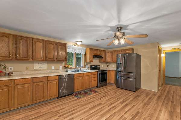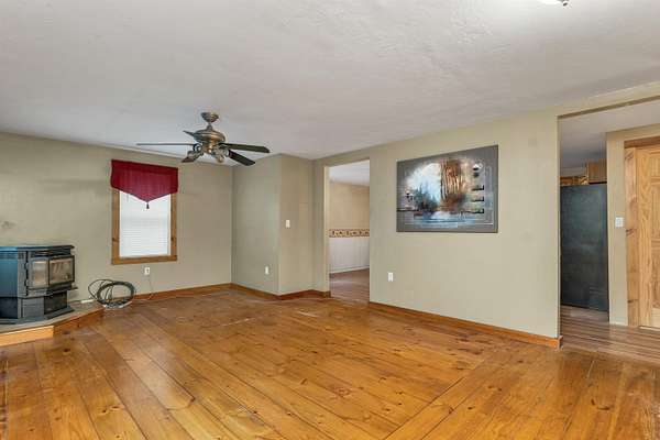 Charming 3 bedroom, 1 1/2 bath Cape on 2 acres in peaceful country setting on a dead end street. Offering a spacious eat-in kitchen with ample oak cabinets, Samsung appliances and attractive newer laminate floor, leads to living room with a efficient pellet stove with a thermostat; it is used as main source of heat with FHW/Oil back-up. Newer tile floor in the half bath on first floor, great convenience. Family room that gives space for relaxation and office/computer space & a slider w/vertical blinds to back deck. The second floor with a fully renovated full bath with tile floor and 3 bedrooms. Having the added finished area in basement makes great recreational/game room. You will appreciate the whole house generator if power goes out run by propane. Utility room with washer & dryer, storage space, heat system and workshop area. You will love escaping & entertaining in the year round cedar wood well-built cabana with windows & screens with a well-maintained 6-person hot tub on the back deck. Home exterior recently painted & in a refreshing lovely color, new 50 year architectural shingles, new stainless-steel lining and chimney cap, attractive rails installed at entries, 14 Marvin windows with tilt-ins added a few years ago. Move-in condition in this loved home and ready for your own personal touches.