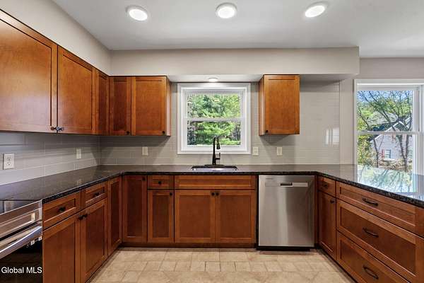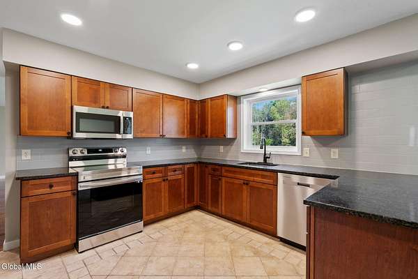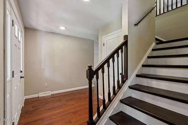 Open House - Sunday, 11/23/2025 - 11a-1p. Set on nearly 2 acres with a pond and located less than 10 minutes from Browns Beach on Saratoga Lake, this expansive Colonial has been completely renovated from the studs and is ready to be yours! Boasting 4 bedrooms and 2 and half bathrooms, the home offers spacious rooms and flowing floorplan. On the first floor is a grand living room with gas fireplace, formal dining room, modern eat-in kitchen with all new appliances, cabinetry and countertops. Finishing off the first floor space is the half-bathroom with laundry space, and brand new washer and dryer. Upstairs is the massive primary suite, with walk-in closet and stunning spa-style bathroom. A wonderful space to relax and unwind. Additionally, there are 2 larger bedrooms and a smaller bedroom on this level, as well as a beautiful full bathroom. Head on down to the basement level and find an amazing flex space with walkout to the back patio and yard. The skies are the limit for how this space can be used and it is ready for you imagination. You'll also find the large utility room and a walk in closet. So much is new in this home including hardwood floors, furnace, central air, windows, doors, the list goes on. All that's needed is your personal touches!