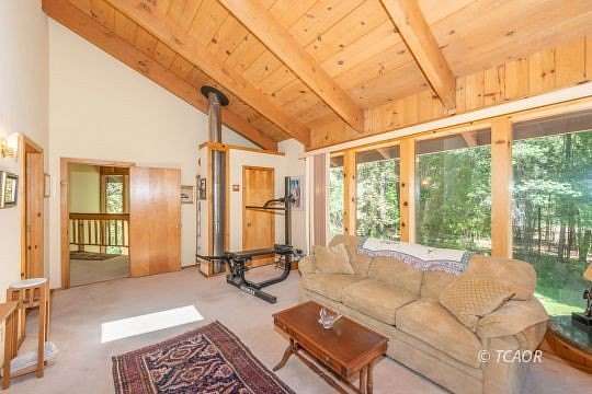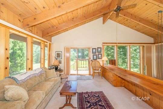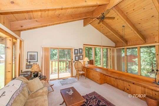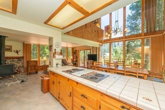 Escape to the heart of the Trinity Alps with this stunning two-story cedar home nestled in the charming community of Coffee Creek,Trinity County. Built in 1981 and beautifully maintained, this approximately 2,000 sq. ft. home offers timeless mountain living with modern comfort. Step inside to discover soaring floor-to-ceiling windows that flood the home with natural light and frame breathtaking views of the surrounding meadows and forest. The rich warmth of tongue-and-groove knotty pine walls and ceilings adds to the rustic charm, while adoring skylights brighten every corner with golden sunlight.The home features two spacious bedrooms and two full bathrooms, with beautifully crafted tile countertops in both the kitchen and baths. A cozy wood stove keeps the home warm and inviting during cooler months, the multi-level decks are perfect for entertaining, relaxing, or simply soaking in the serene natural beauty.Outside, enjoy direct creek frontage on tranquil Treasure Creek, with peaceful meadows unfolding at the base of the majestic Trinity Alps Wilderness on 2.26 acre For all your storage or hobby needs, the property includes a one-car attached garage and a detached two-car garage