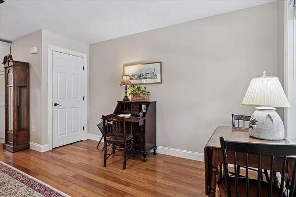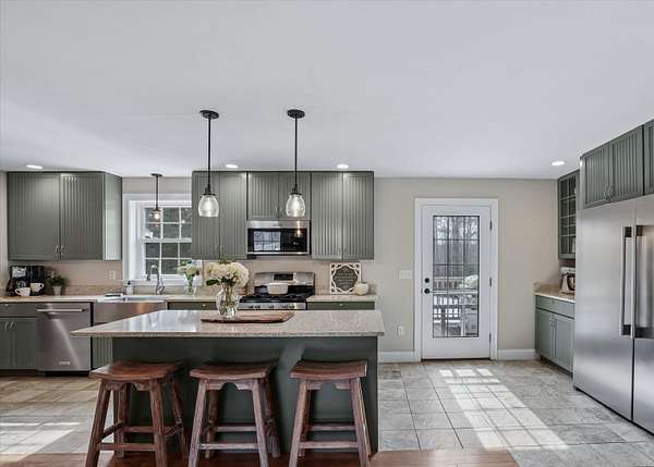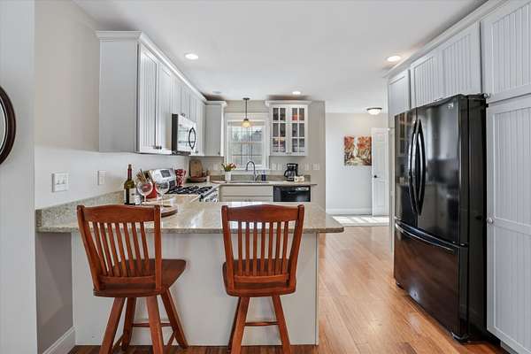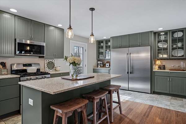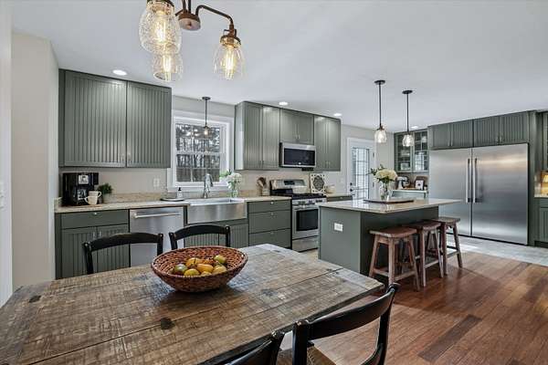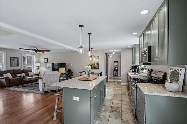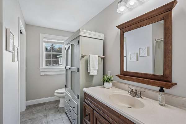 PICTURE-PERFECT EXPANDED CAPE WITH EXCEPTIONAL ADU! TWO HOMES IN ONE ON A SCENIC CUL-DE-SAC! Nestled on a lovely wooded lot in desirable Mont Vernon known for excellent schools and outdoor recreation, this versatile home offers incredible flexibility. A welcoming farmer’s porch invites quiet mornings with coffee and sunrise views across pastoral landscapes. Inside, sunlit interiors shine from the living room with hardwood flooring to the decorator’s kitchen. Guests will gather at the island as the host grabs drinks and snacks from built-in supersized side-by-side refrigerator/freezer and custom cabinetry. On warm days extend entertaining to the elevated deck for barbecues and alfresco meals surrounded by a serene tree-lined back yard. The walkout garden level with a mini split offers potential for future finished recreation space. Just add flooring and walls! After a day spent exploring the nearby Purgatory Falls Trails, retreat to the first floor primary with walk-in closet and glassed shower, while a second en suite bedroom offers ideal guest or office space. Upstairs, two bedrooms share a spa-inspired bath and soaking tub. Want more? The thoughtfully designed accessory dwelling unit will impress with its own covered porch, high-end kitchen and light-filled living spaces where nothing has been overlooked. It’s perfect for multi-generational living or income potential. With solar savings and easy access to nearby dining, shopping and the arts as well a brand new Daland library, what’s not to love? A RARE OPPORTUNITY FOR FLEXIBLE AND ELEVATED LIVING!