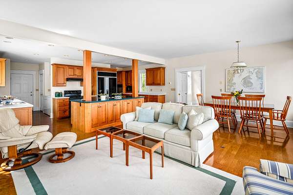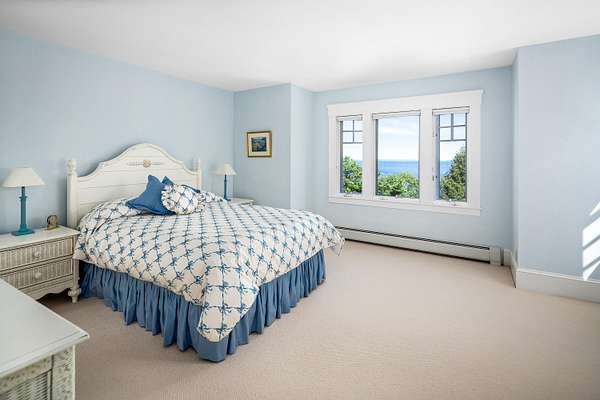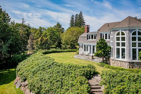 Fantastic opportunity to be only the second owner of the magnificent custom built shingle style ocean front home in one of Rockport's most beautiful residential neighborhoods. Eastward on the Ocean features tennis courts, an outdoor swimming pool, walking trails along 2,500 feet of shorefront, and shared access to the Manor House for private events. Entering the home, you're greeted by a stunning living room with soaring ceilings, a great wood burning fireplace, and a wall of glass overlooking Penobscot Bay. There is a large first floor primary bedroom suite, gorgeous wood paneled library / office with a second wood burning fireplace, formal dining area, an eat-in kitchen, and a family room with a gas fireplace. Upstairs you'll find three additional bedrooms each overlooking the water, two full bathrooms, as well as a comfortable family room, and a sitting room with potential to be a 5th bedroom or an upstairs office area. An attached two car garage, automatic standby generator, and beautiful landscaping complete this wonderful home.