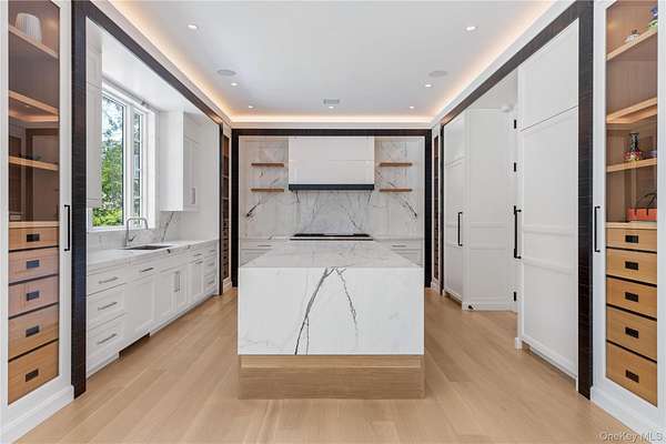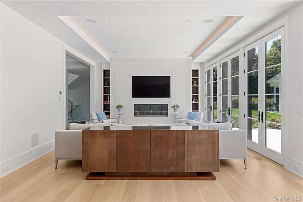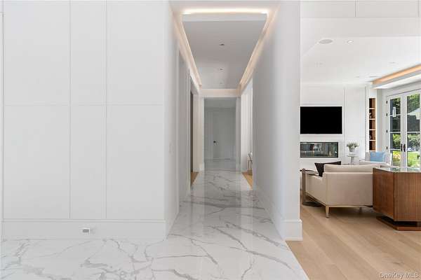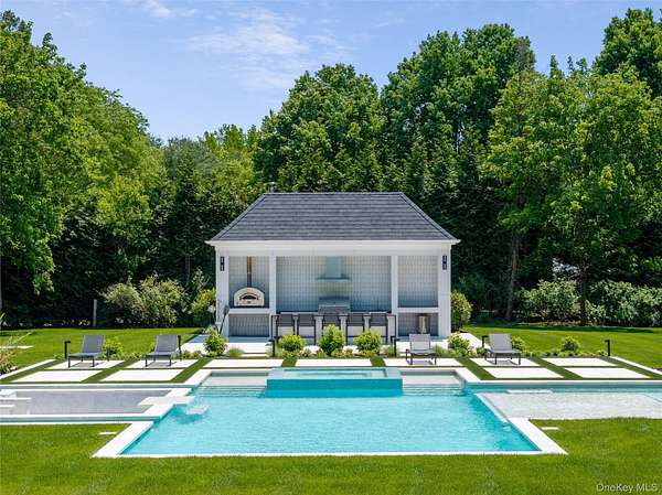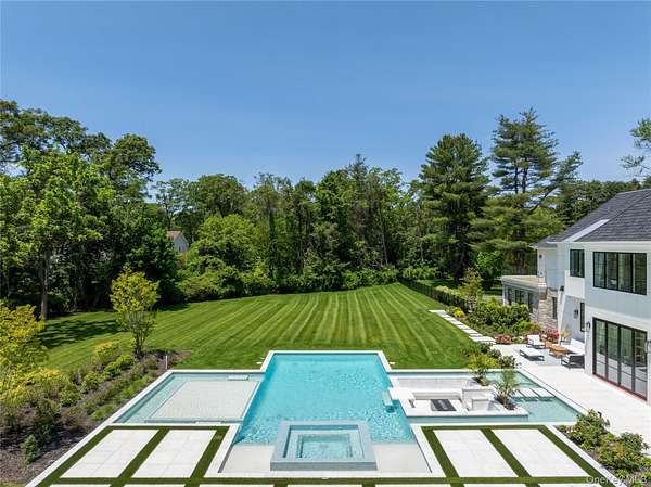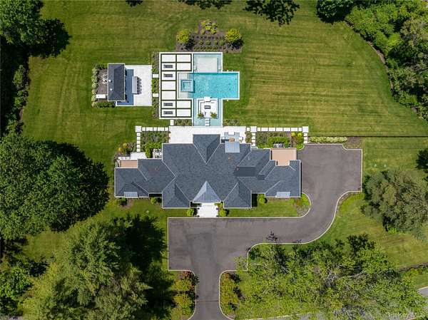 Set on 2 private and beautifully landscaped acres at the end of a cul-de-sac in the coveted Broad Hollow development of Brookville, this newly built estate offers over 11,400 square feet of total living space-including a 3,600 SF walk-out lower level and a fully outfitted pool cabana-within the top-rated Jericho School District. Designed with a perfect balance of form and function, this luxurious home features 7 en-suite bedrooms and 10 baths, including a first-floor junior primary suite and a grand second-floor primary retreat with a spa-like bath, steam shower, double vanity and expansive his and her's closets. Many of the secondary suites also feature access to private balconies with amazing views of the retreat-like landscape. Radiant heat runs throughout, and every detail is elevated with bespoke finishes, custom millwork, and designer craftsmanship. The interiors showcase a custom chef's kitchen, a marble-wrapped family room feature wall, multiple Davinci fireplaces, and a striking lounge with a backlit stone display and integrated cabinetry. A full-house generator ensures uninterrupted comfort and peace of mind year-round. Outdoors, a 65-foot pool with baja shelf, oversized spa, and sunken fire pit lounge anchor the resort-style grounds. Expansive patios, a full cabana with bath and storage, and a built-in BBQ with island bar complete the entertainer's dream. A rare opportunity to own a newly constructed, design-forward residence in one of Brookville's most prestigious enclaves.